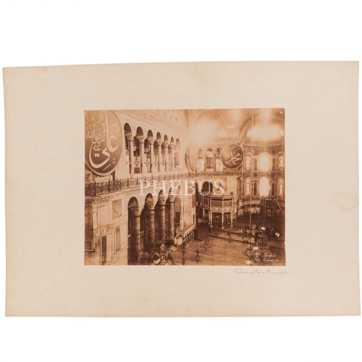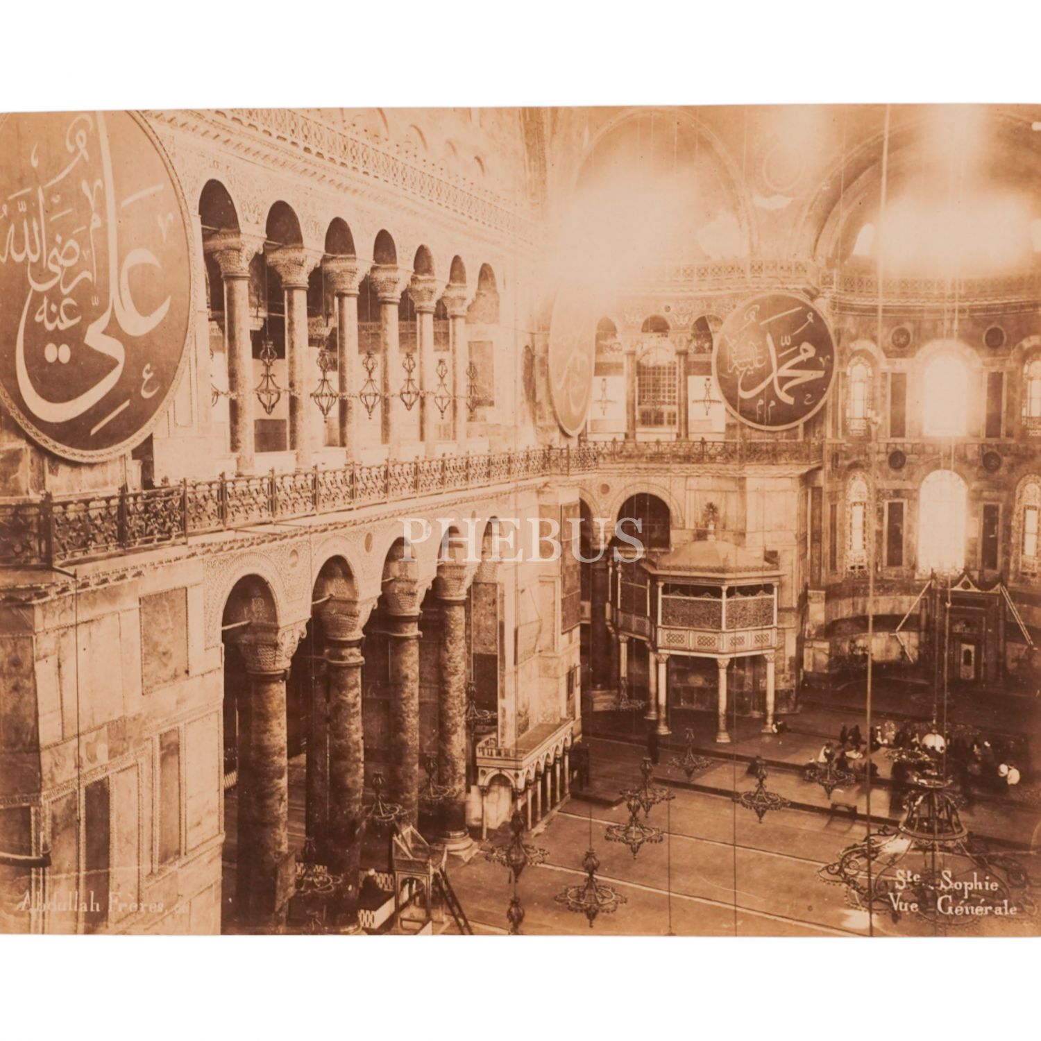 Osmanlı dönemi İstanbul´unun ünlü fotoğrafhanesi Abdullah Freres´in sahipleri ve Padişah´ın fotoğrafçısı Abdullah biraderlerin objektifinden Ayasofya Camii´nin sepya baskı fotoğrafı, 46x32 cm...