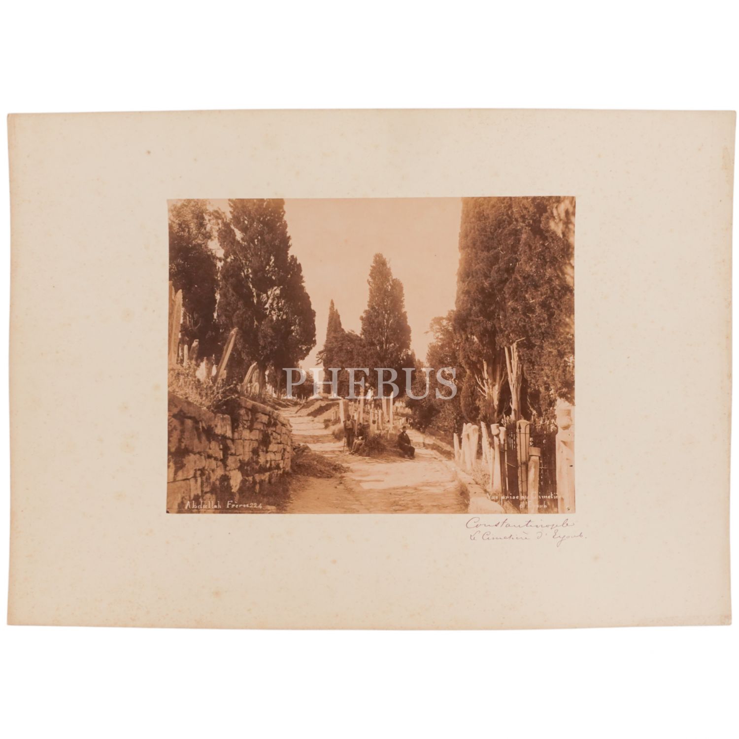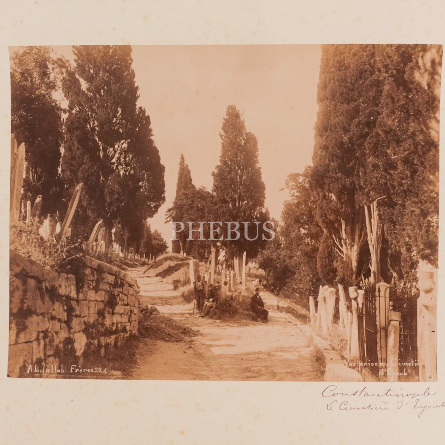Osmanlı dönemi İstanbul´unun ünlü fotoğrafhanesi Abdullah Freres´in sahipleri ve Padişah´ın fotoğrafçısı Abdullah biraderlerin objektifinden Eyüp Sultan Mezarlığı´nın sepya baskı fotoğrafı, 46x32 cm...