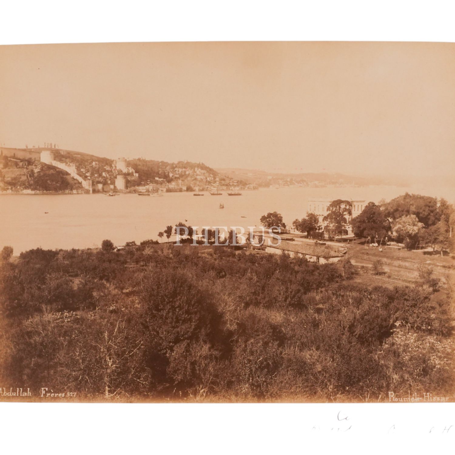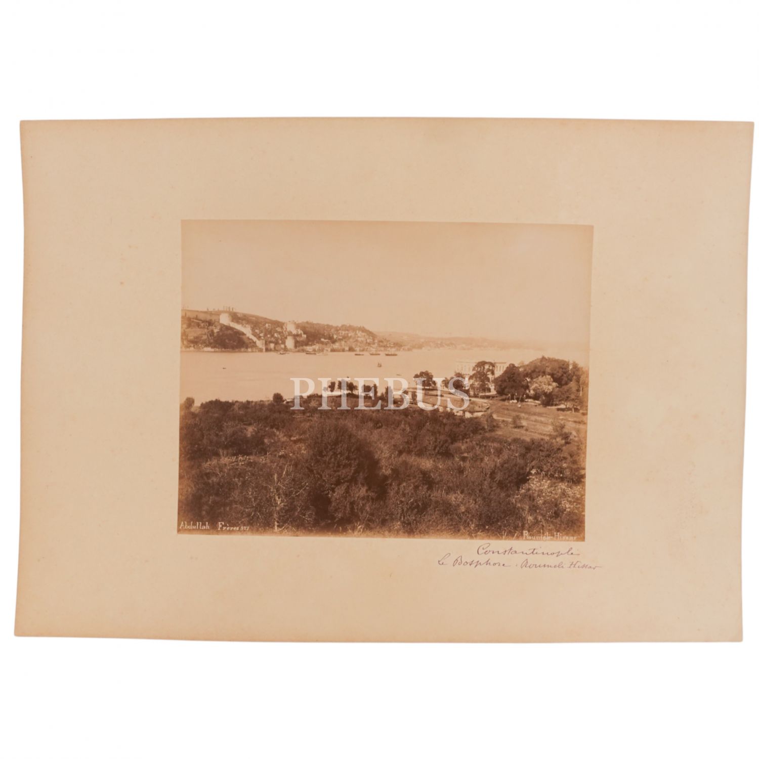 Osmanlı dönemi İstanbul´unun ünlü fotoğrafhanesi Abdullah Freres´in sahipleri ve Padişah´ın fotoğrafçısı Abdullah biraderlerin objektifinden Boğaziçi ve Rumeli Hisarı´nın sepya baskı fotoğrafı, 46x32 cm...