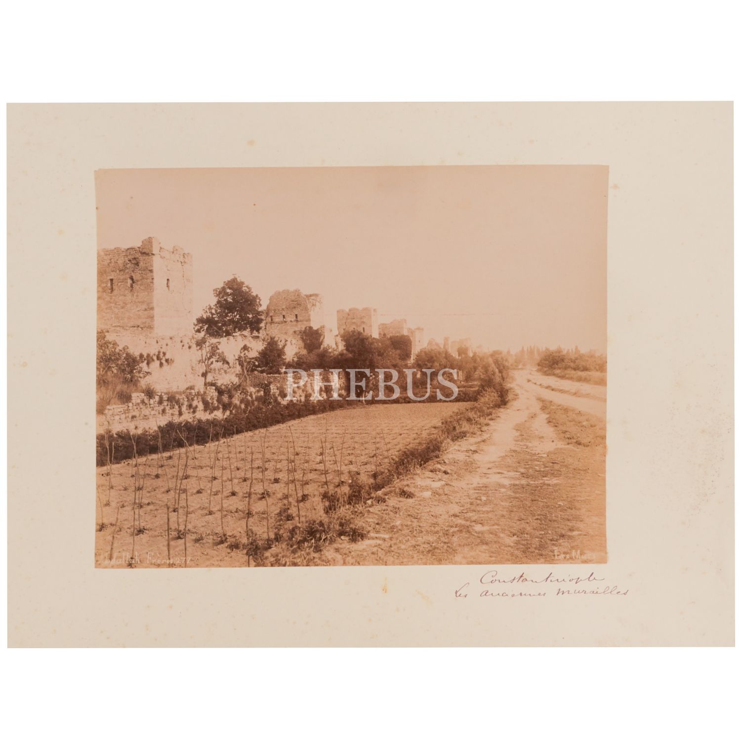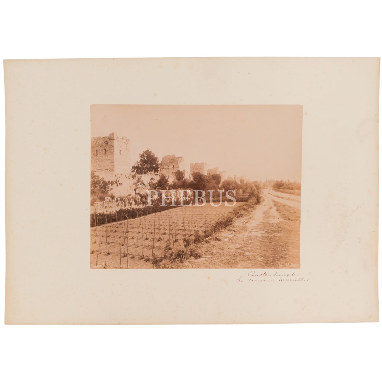 Osmanlı dönemi İstanbul´unun ünlü fotoğrafhanesi Abdullah Freres´in sahipleri ve Padişah´ın fotoğrafçısı Abdullah biraderlerin objektifinden sur dibinde bir bostanın sepya baskı fotoğrafı, 46x32 cm...