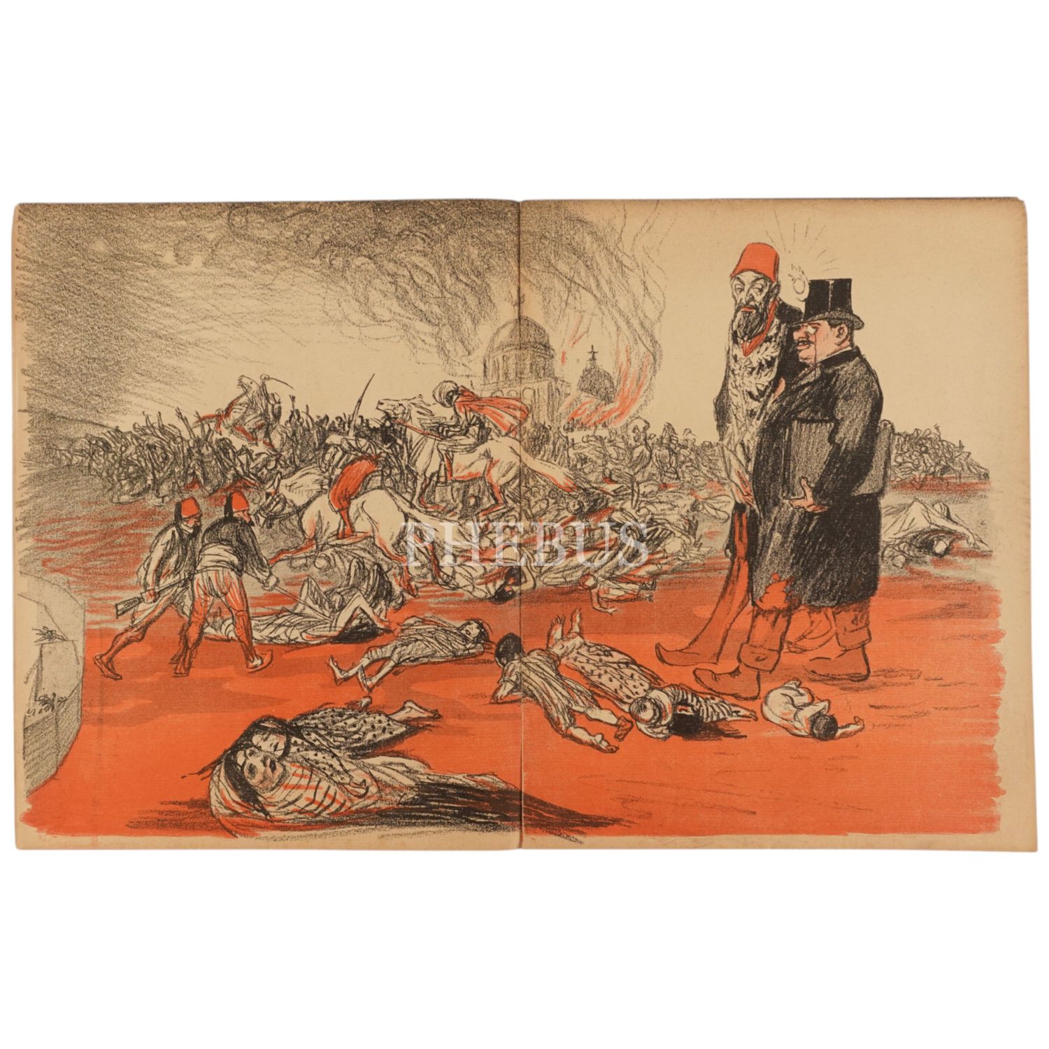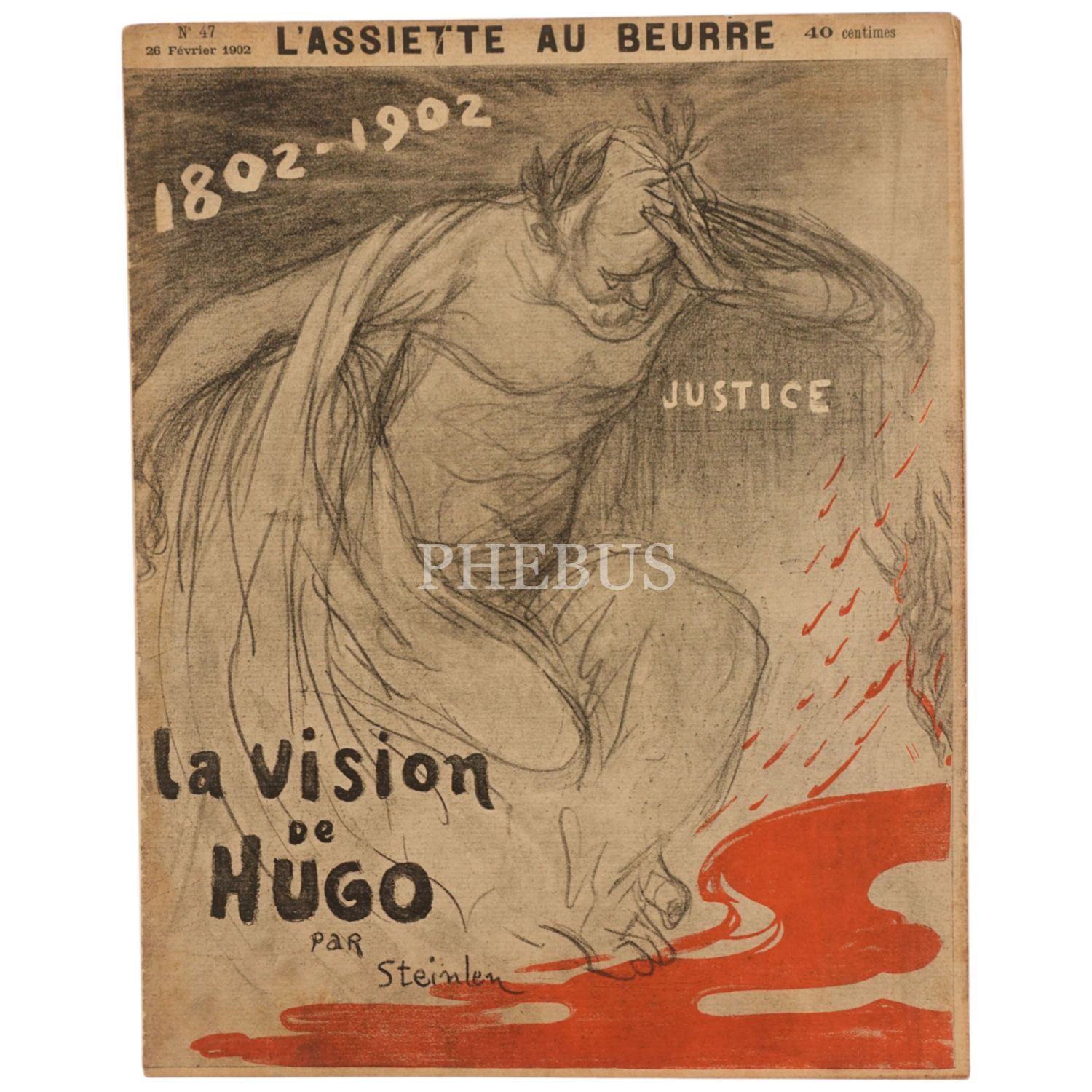 Osmanlı-Yunan Savaşını konu alan "La Vision de Hugo" başlıklı çizimlerin yayımlandığı, Sultan İkinci Abdülhamid´in de resmedildiği L´ASSIETTE AU BEURRE dergisinin 26 Şubat 1902 tarihli nüshası, 25x32 cm...