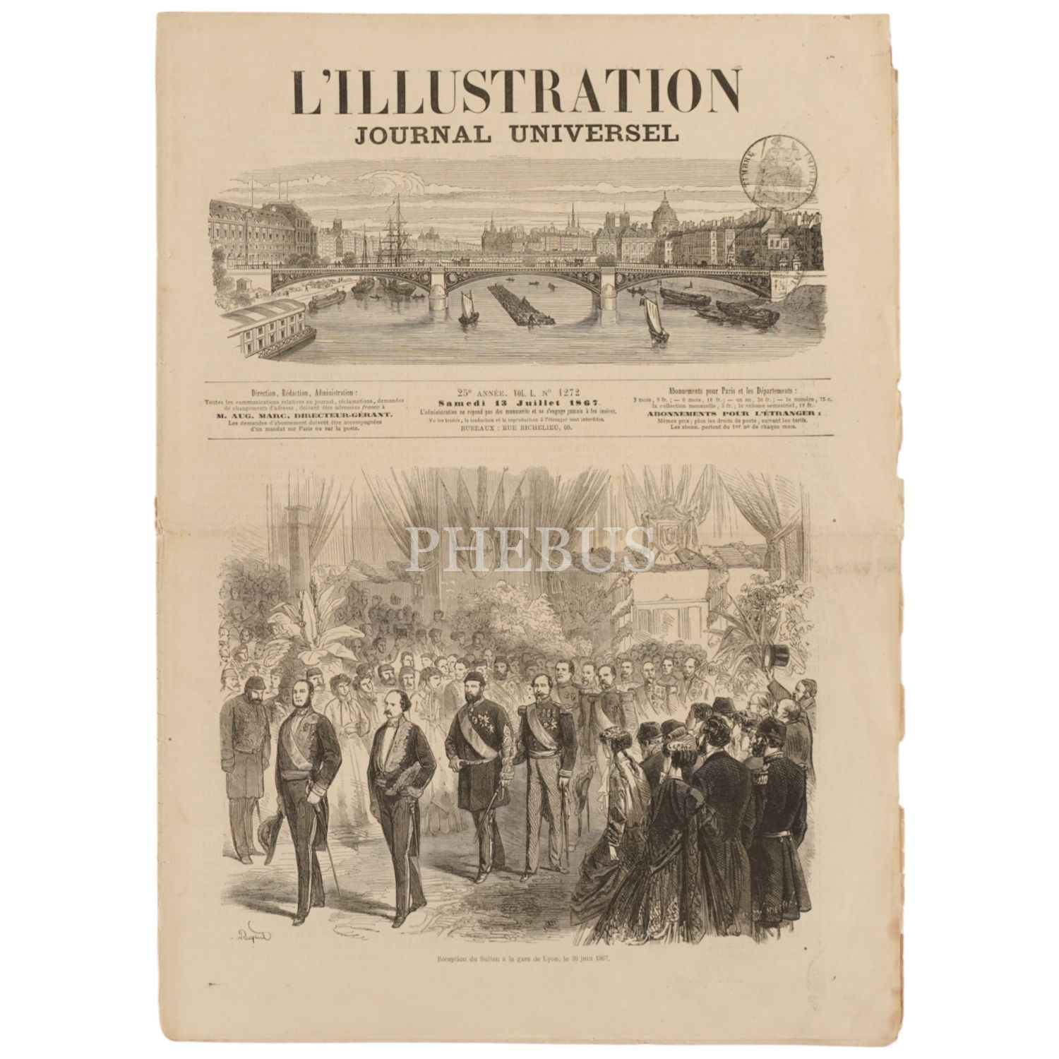 Sultan Abdülaziz´in Avrupa seyahatinden bir çizime kapağında yer veren L´ILLUSTRATION dergisinin 13 Haziran 1867 tarihli nüshası, 27x39 cm...