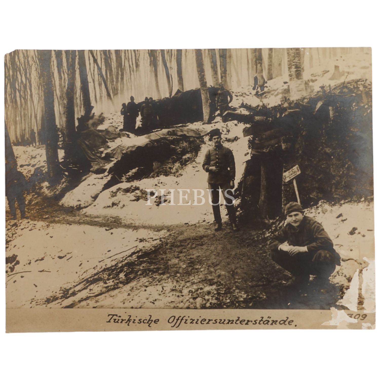 Çanakkale Cephesi´nde Türk subaylar ve barınakları, "Türkische Offiziersunterstande", 22x17 cm...