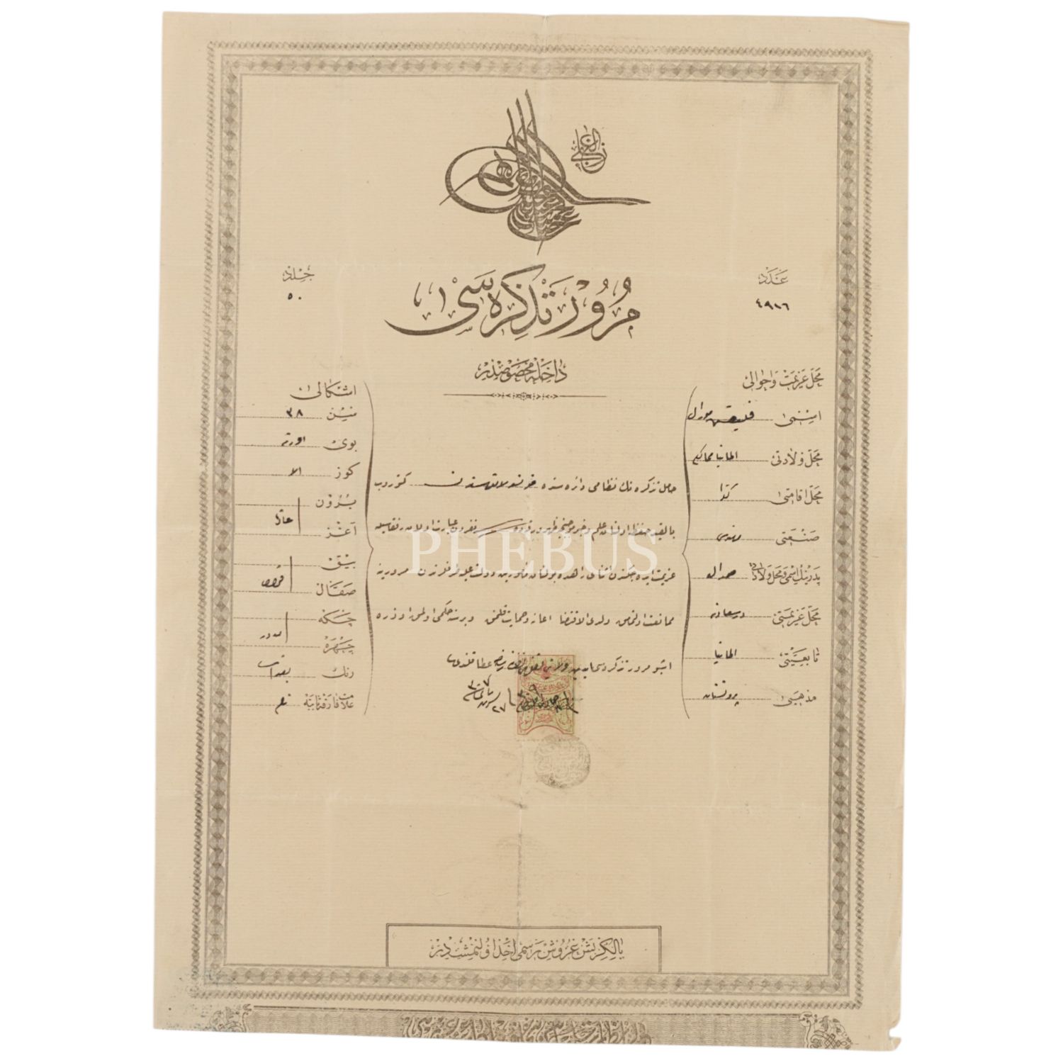 Seyyah, ressam ve mühendis olan Alman asıllı Felix Moral´ın İstanbul´a gerçekleştireceği seyahatinde kendisine verilen mürur tezkiresi, 27 Teşrinisani 1307, 30x41 cm...