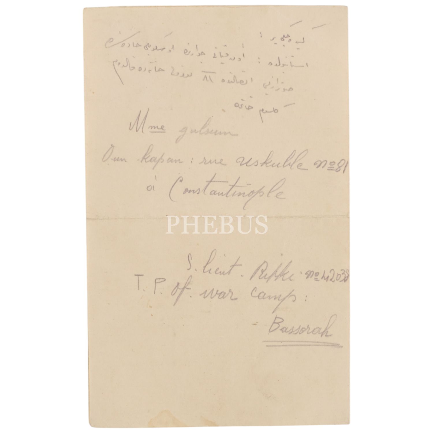 1920 senesinde Bağdat´ta görev yapan bir Osmanlı askerinin, el yazısıyla kaleme alıp bir de fotoğrafını iliştirip nişanlısına gönderdiği 2 adet mektubu, 11x17 cm...
