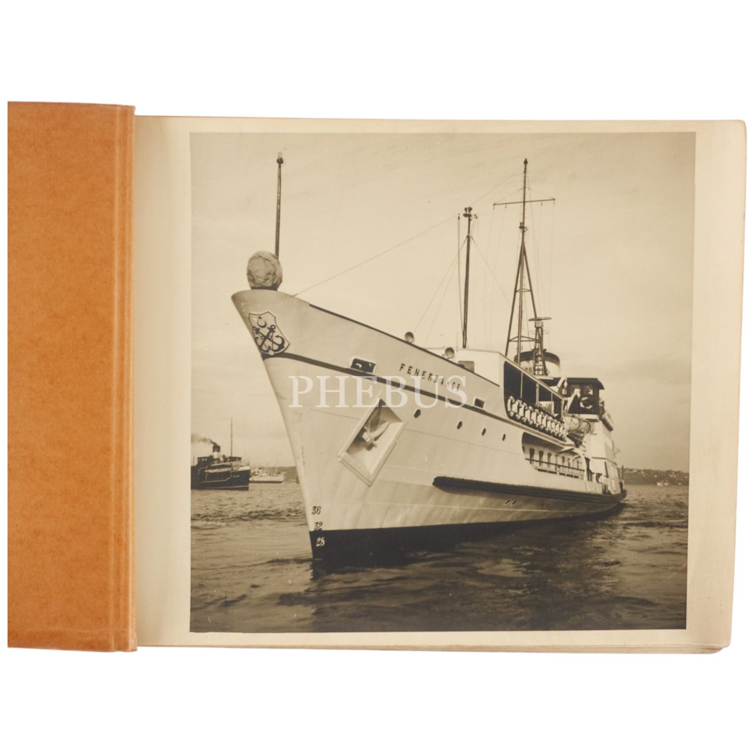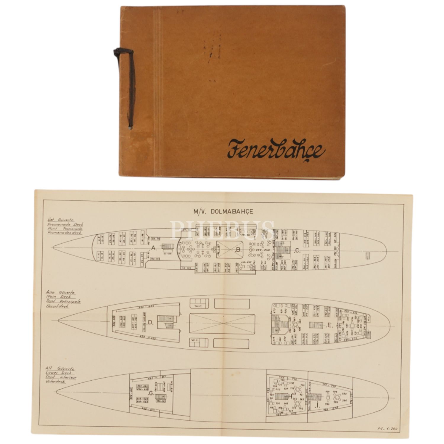 Yassıada Mahkemeleri’nin resmî vapuru olarak da çalışan, her sabah Dolmabahçe önünden mahkeme görevlilerini, Demokrat Partililerin ailelerini ve avukatlarını alıp Yassıada’ya götüren ve her akşam, tekrar İstanbul’a dönüp aynı iskeleye bırakan FENERBAHÇE vapurundan fotoğraflar içeren albüm, 24x18 cm...