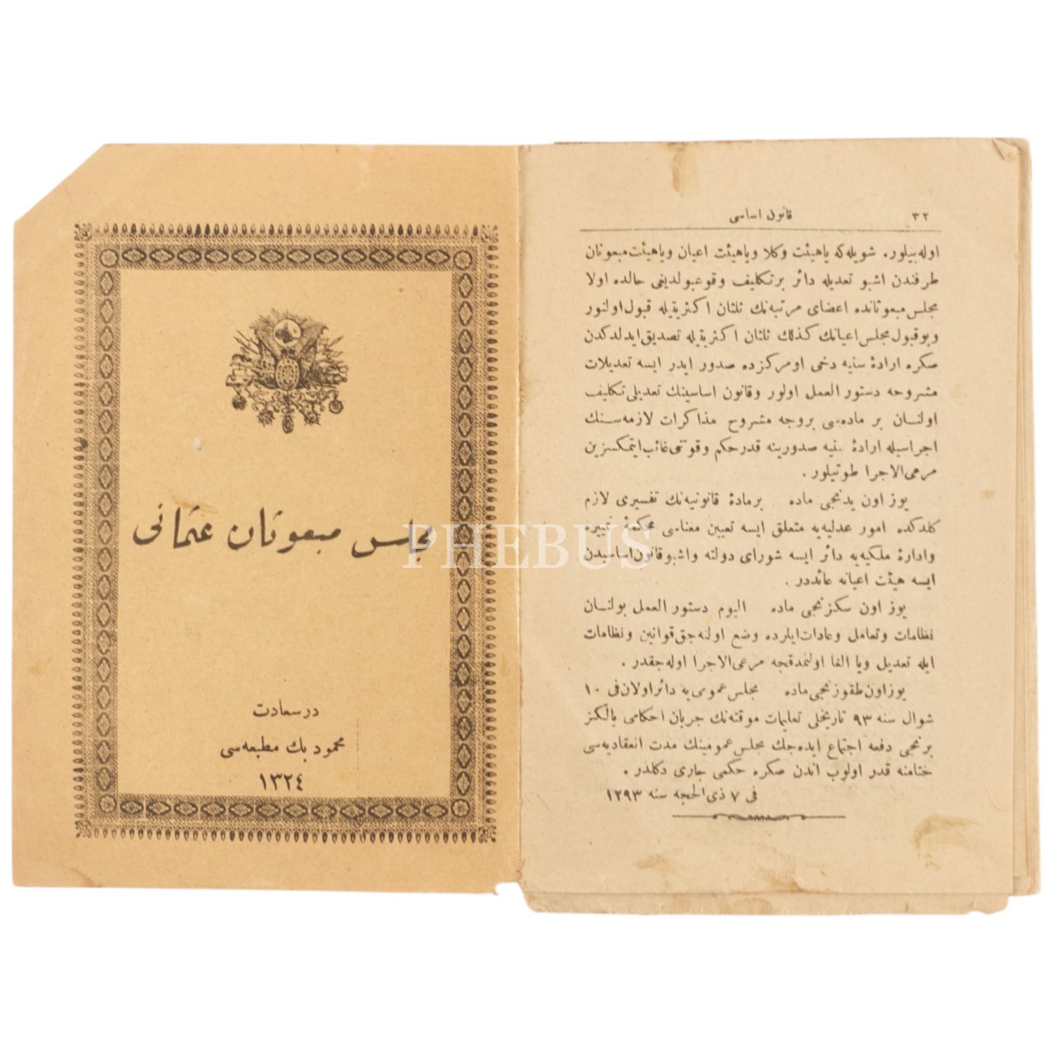 KANUN-İ ESASİ, 1324, Mahmutbey Matbaası, 32 sayfa, 13x19 cm...
