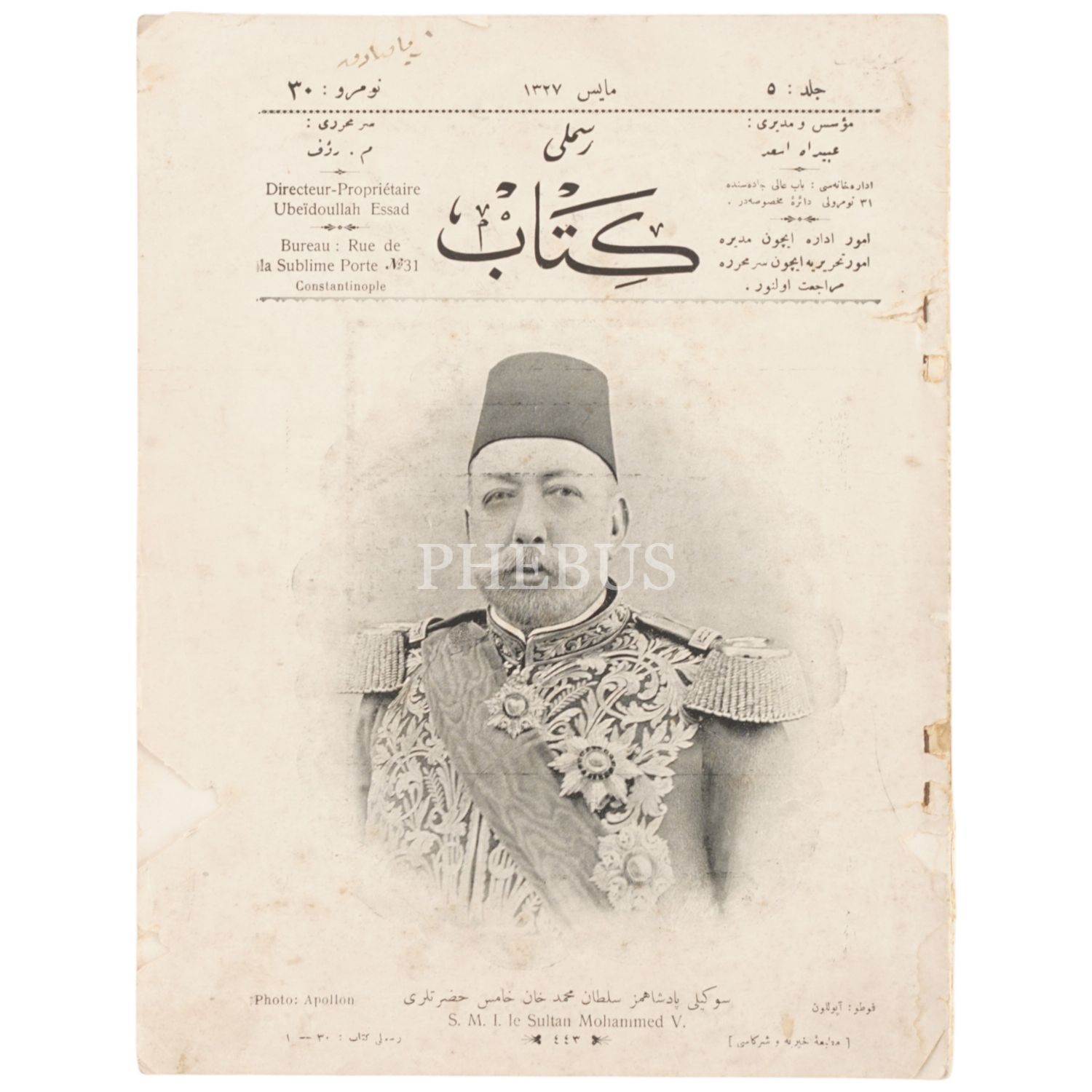 Sultan Mehmed Reşad kapaklı RESİMLİ KİTAP dergisinin Mayıs 1327 tarihli 30. sayısı, 19x25 cm...