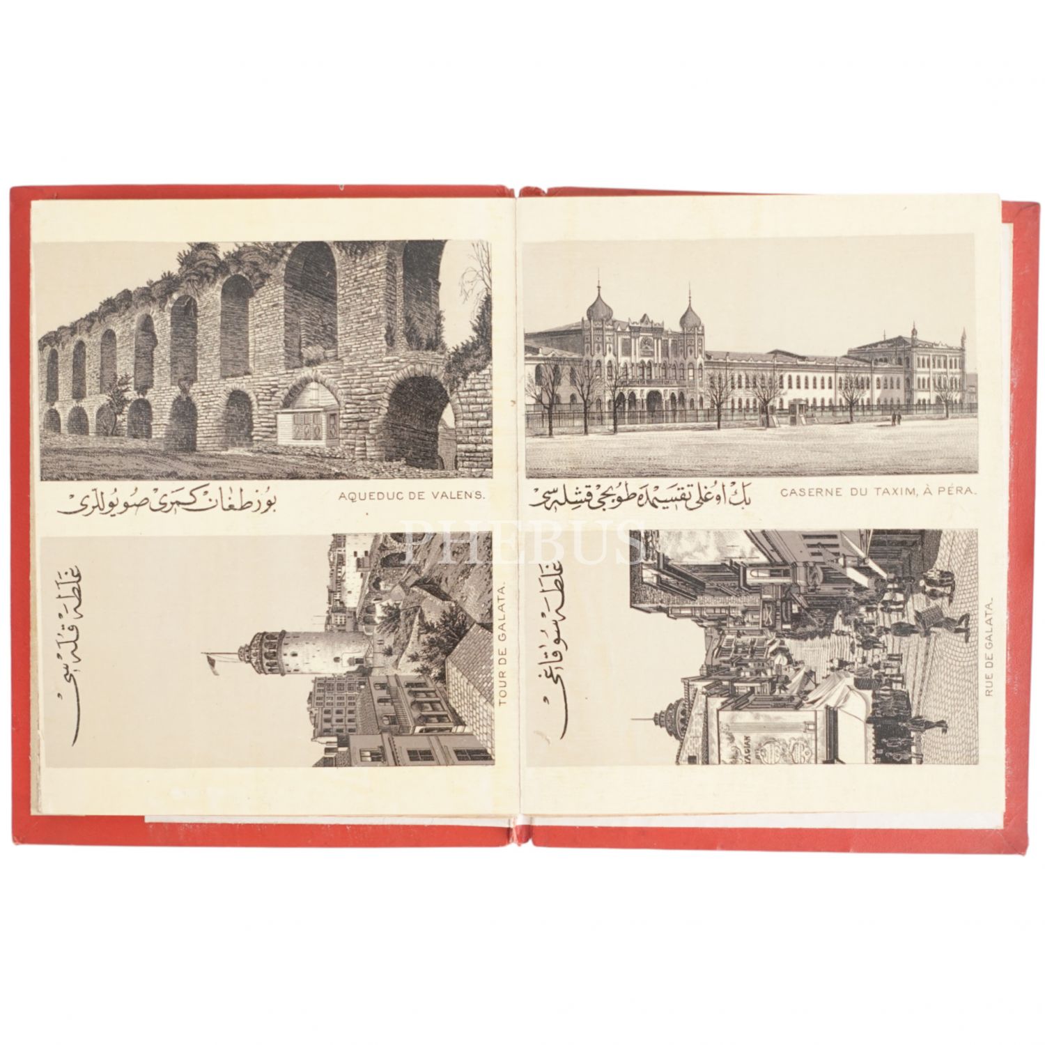 İstanbul´un tarihi ve mimari yapılarının resimlerinden oluşan "YADİGAR-I KOSTANTİNİYYE" başlıklı, Osmanlıca ve Fransızca açıklamalı albüm, 25x18 cm...
