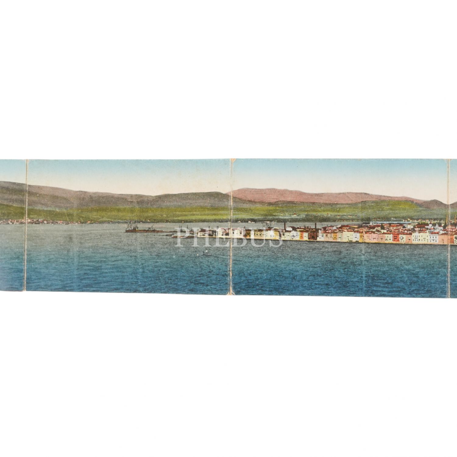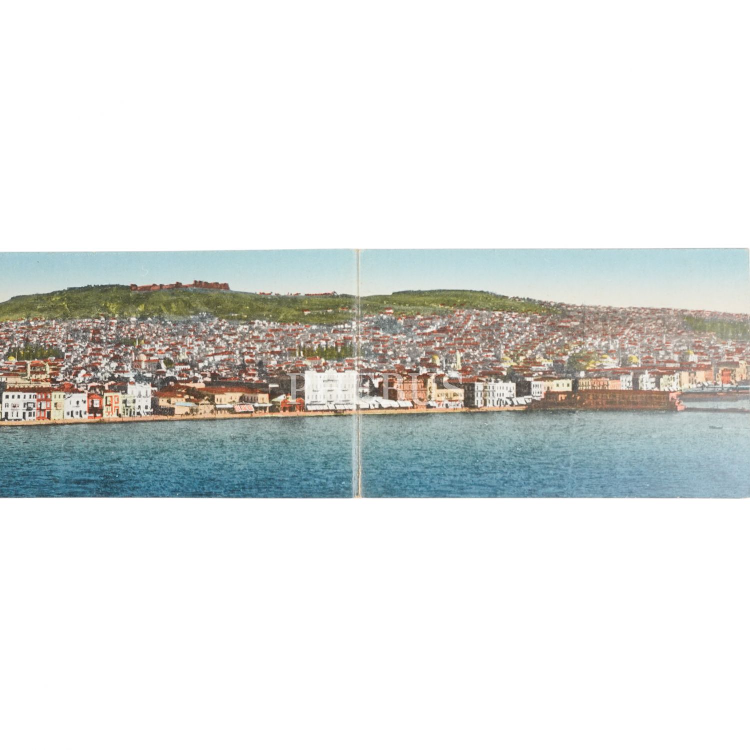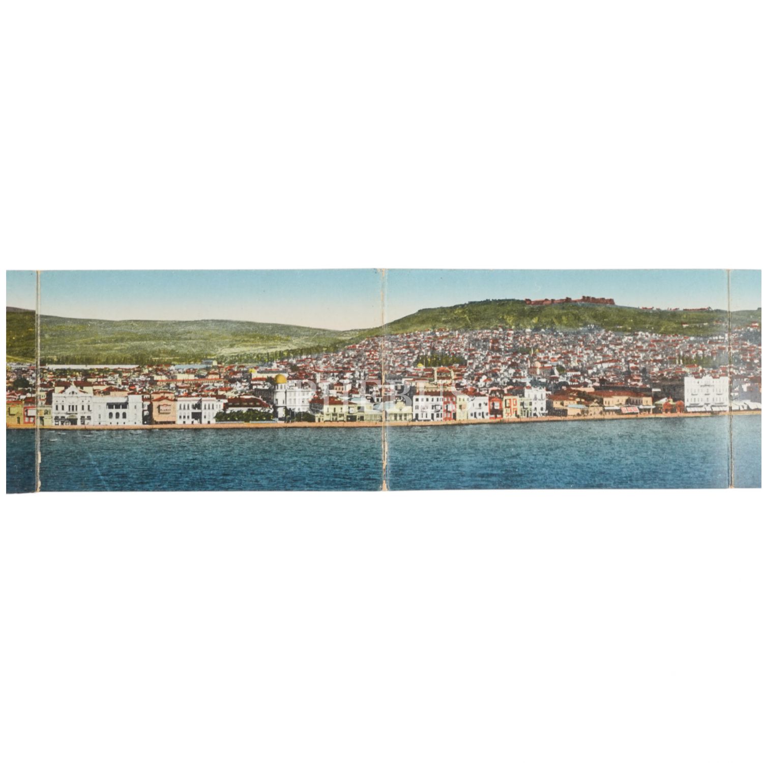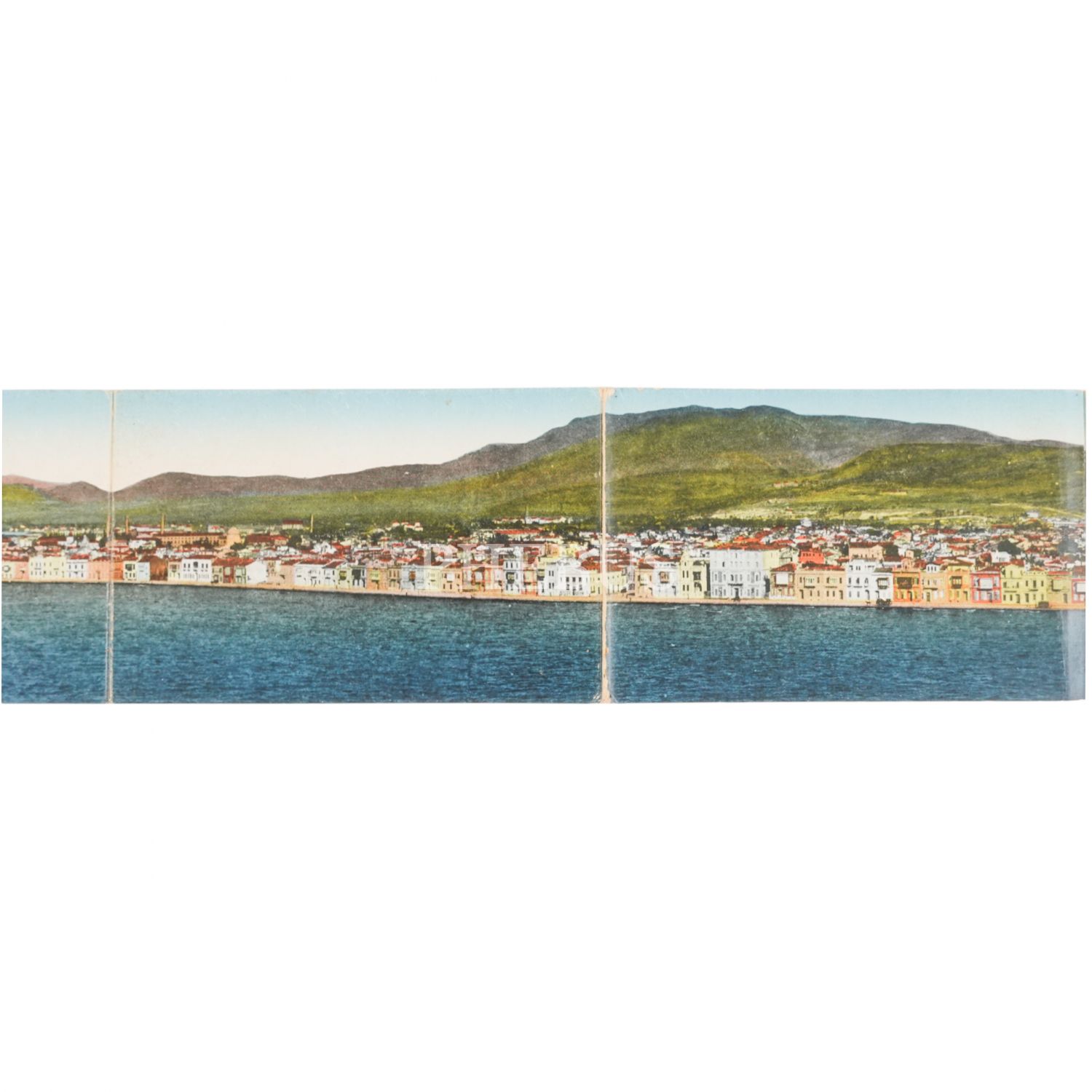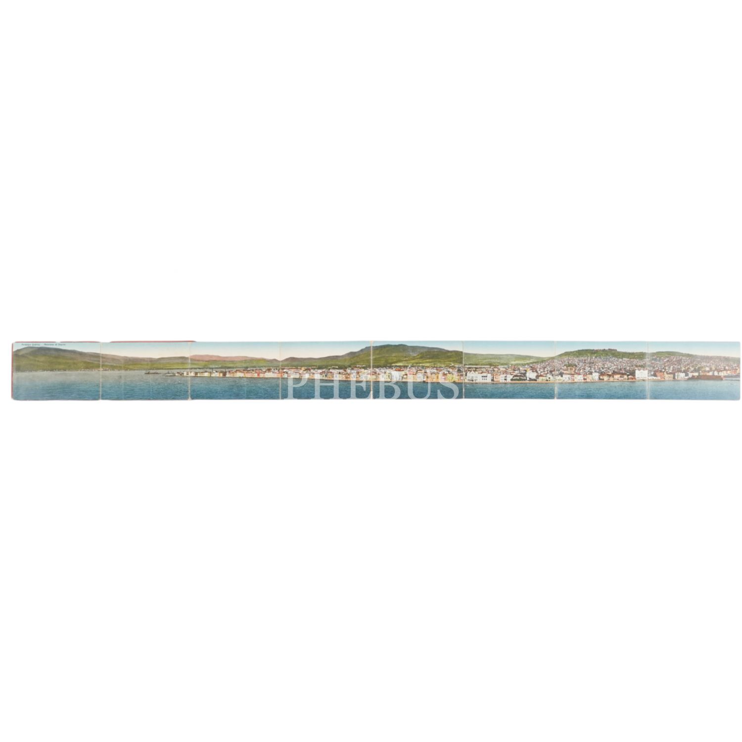 Kartpostal editörü S. Sarantopoulos´un hazırladığı, Rumca ve Fransızca Souvenir de Smyrne başlıklı İzmir panoraması, 138x9 cm...
