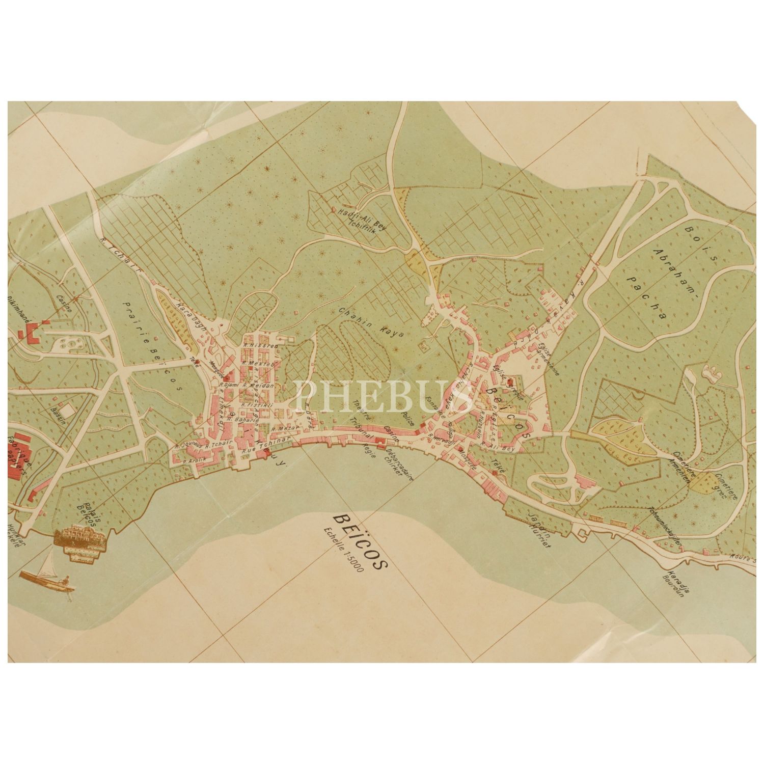 İstanbul Belediyesi tarafından Necip Bey´e hazırlatılan ve "Necip Bey haritaları" namıyla meşhur olan haritaların 7. paftası, Beykoz ve Paşabahçe, 1924, Ahmed İhsan ve Matbaası, 110x61 cm...