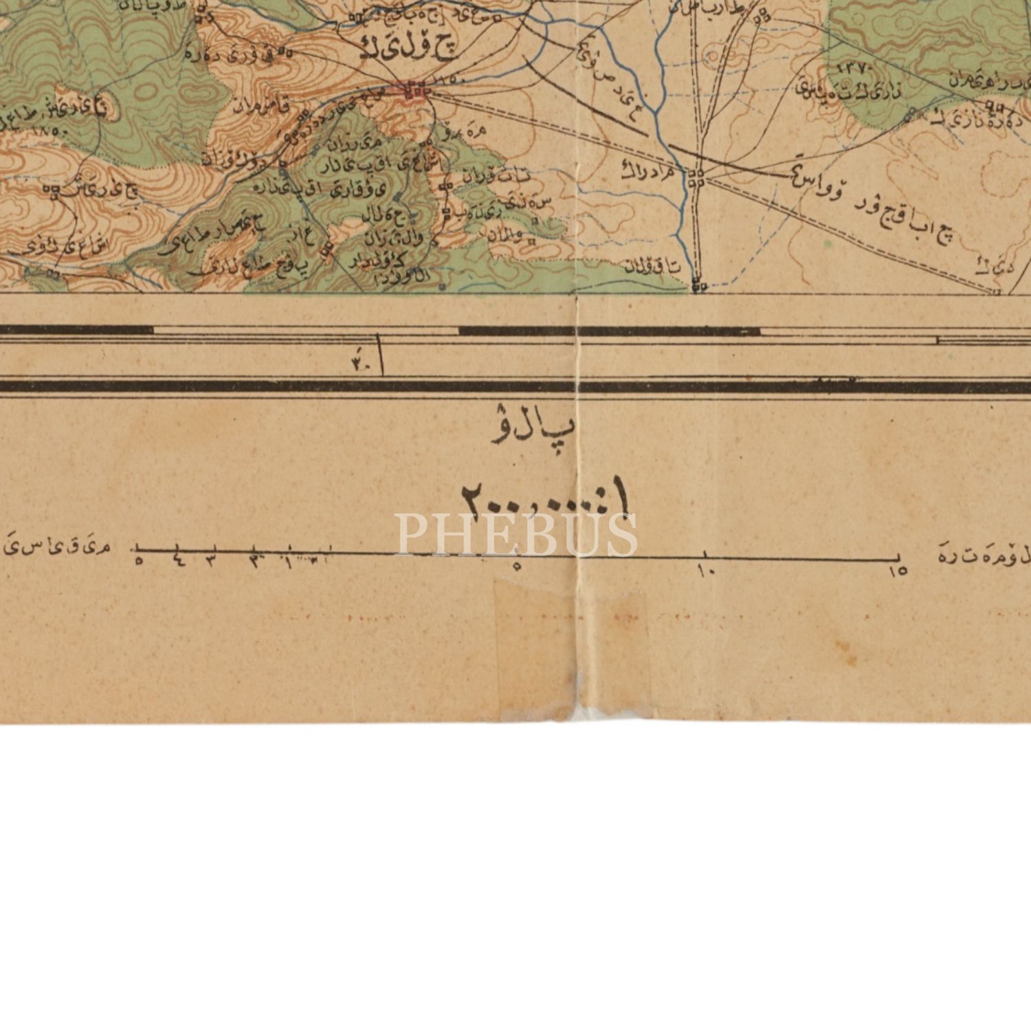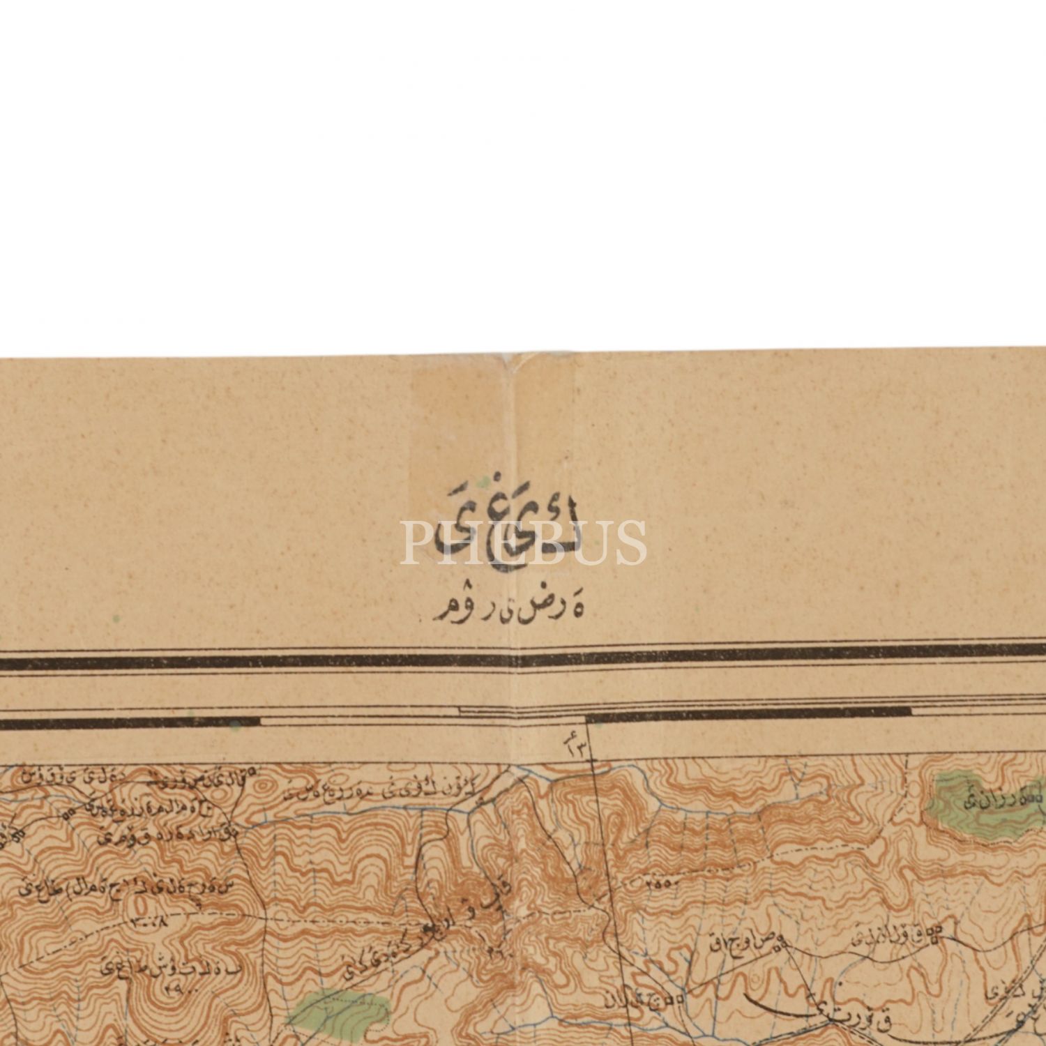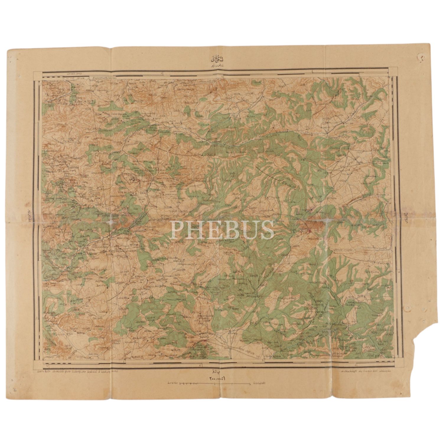 Enver Paşa´nın geliştirdiği "Huruf-ı Munfasıla" ya da "Enveriye" olarak adlandırılan yazı sistemi ile hazırlanmış Erzurum Kiğı Haritası, Erkan-ı Harbiye-yi Umumiye Matbaası, 1330, 60x50 cm...