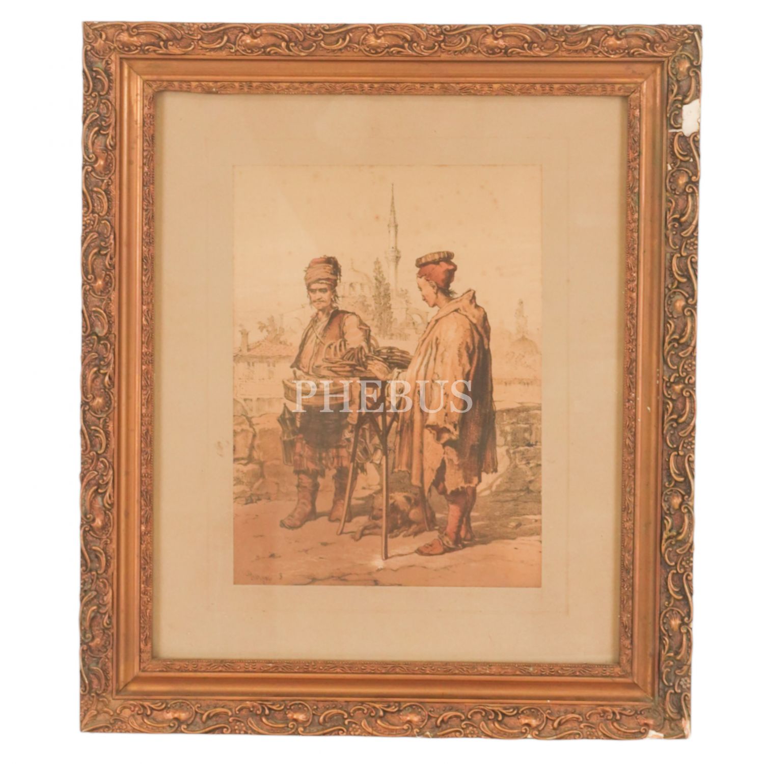 Amedeo Preziosi tarafından 1858 yılında yayımlanan “STAMBOUL: Recollections of Eastern Life” adlı albümünde yer alan "Simitçi" resminin, sanatçının ıslak imzasını taşıyan renkli taşbaskısı, eser 26x35 cm, çerçeve 51x60 cm...