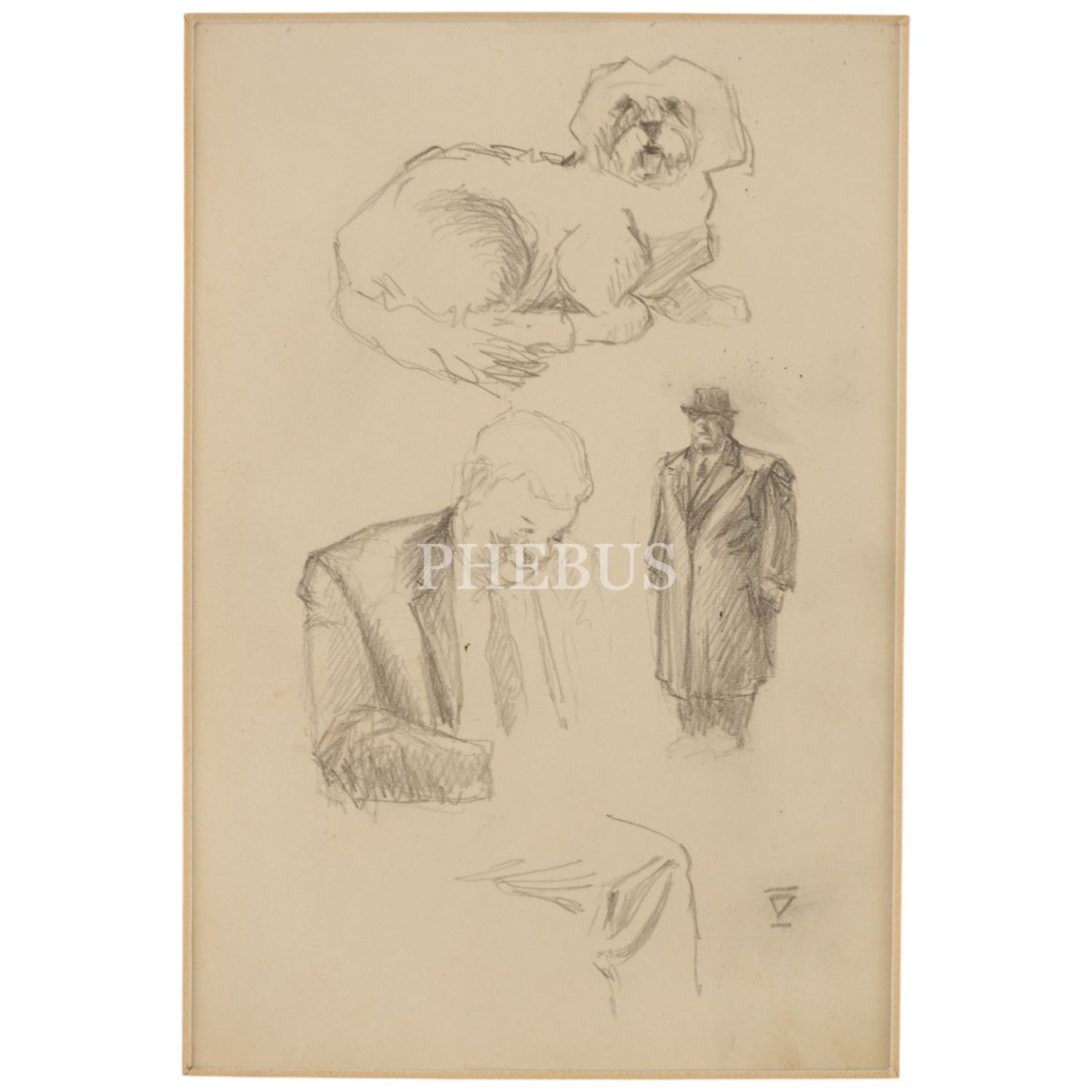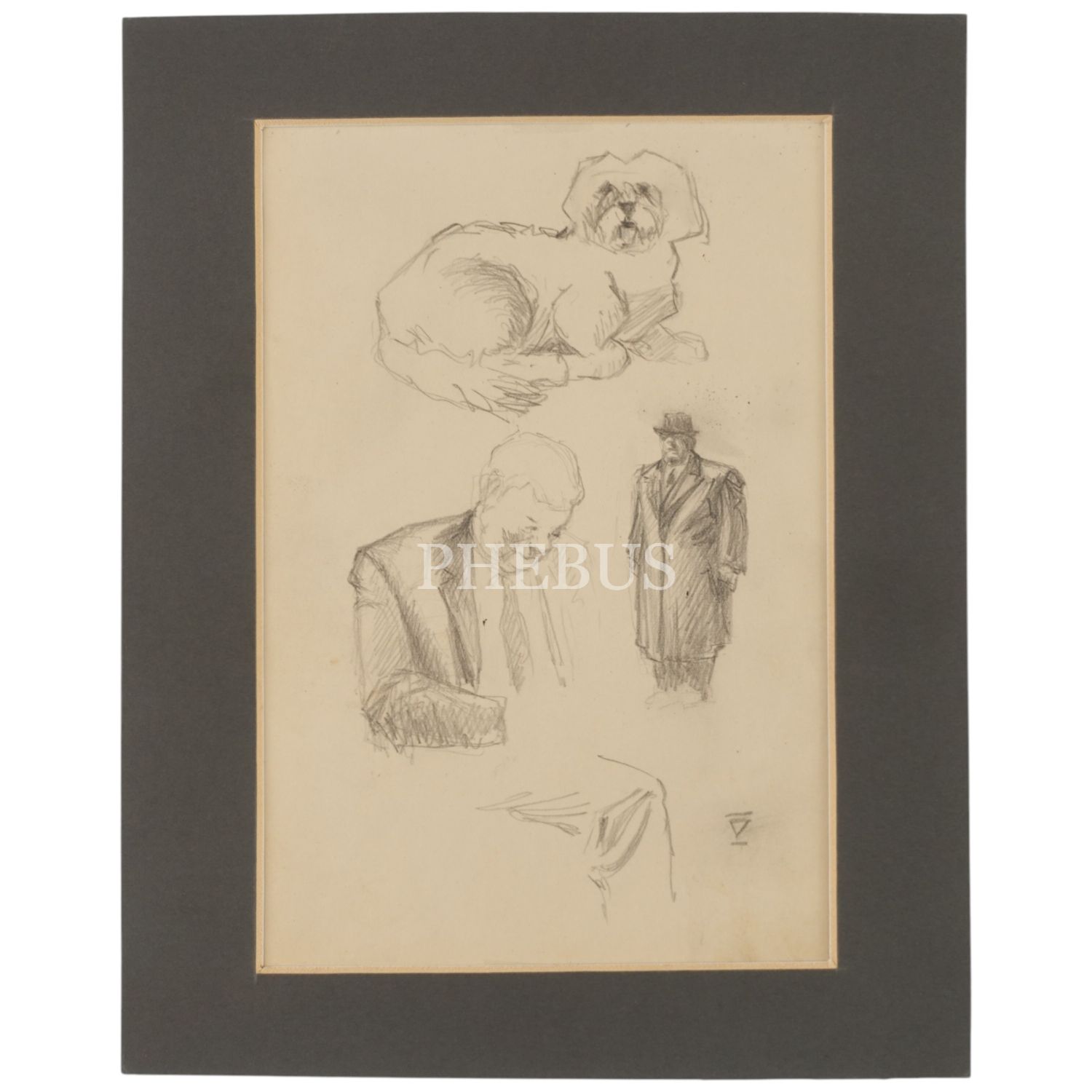 İhap Hulusi Görey´den imzalı, orijinal çizim insan ve köpek figürü eskizi, 20x25 cm...