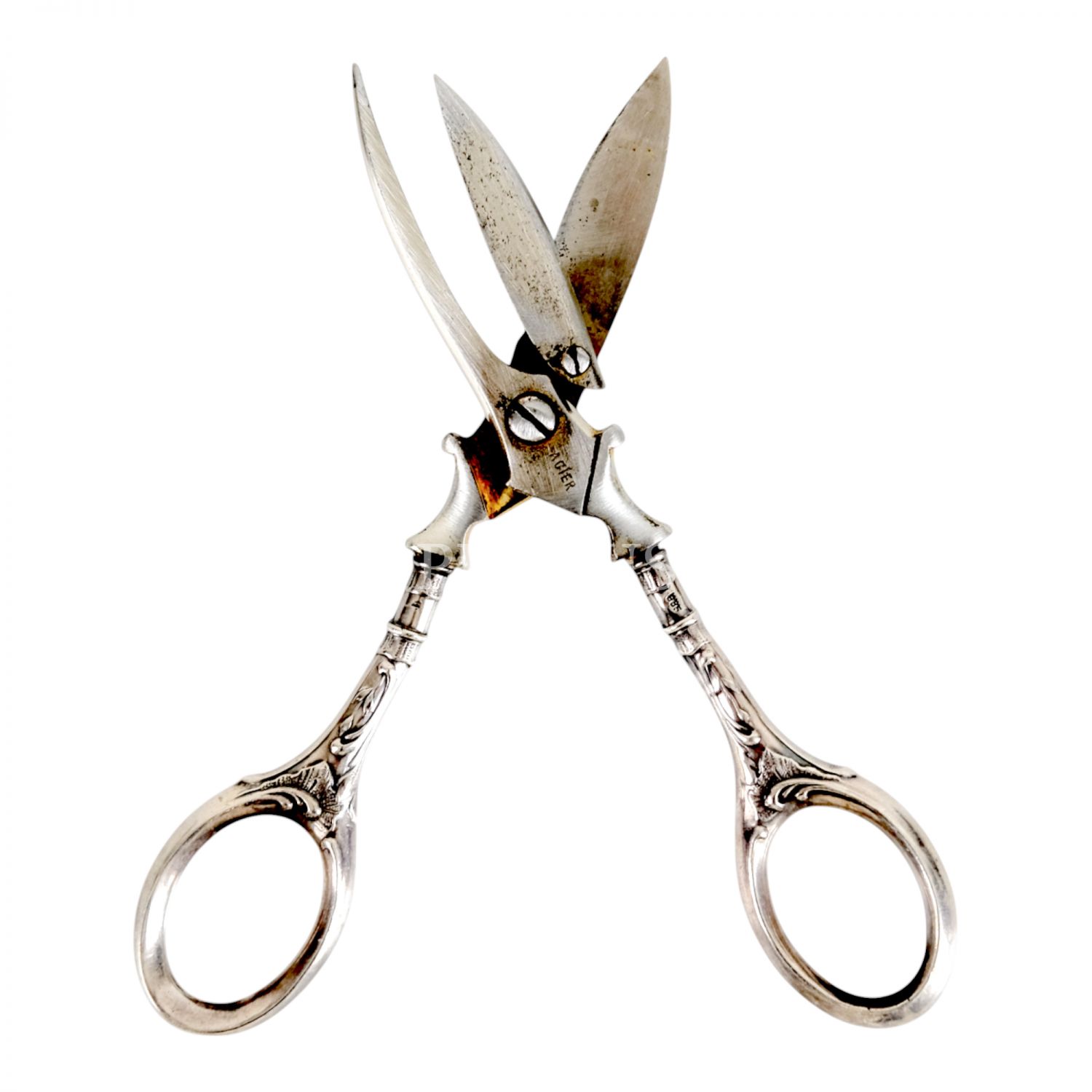 20. Yüzyıl Avrupa imalatı, 835 ayar gümüş saplı makas, 13 cm, 42 gr...