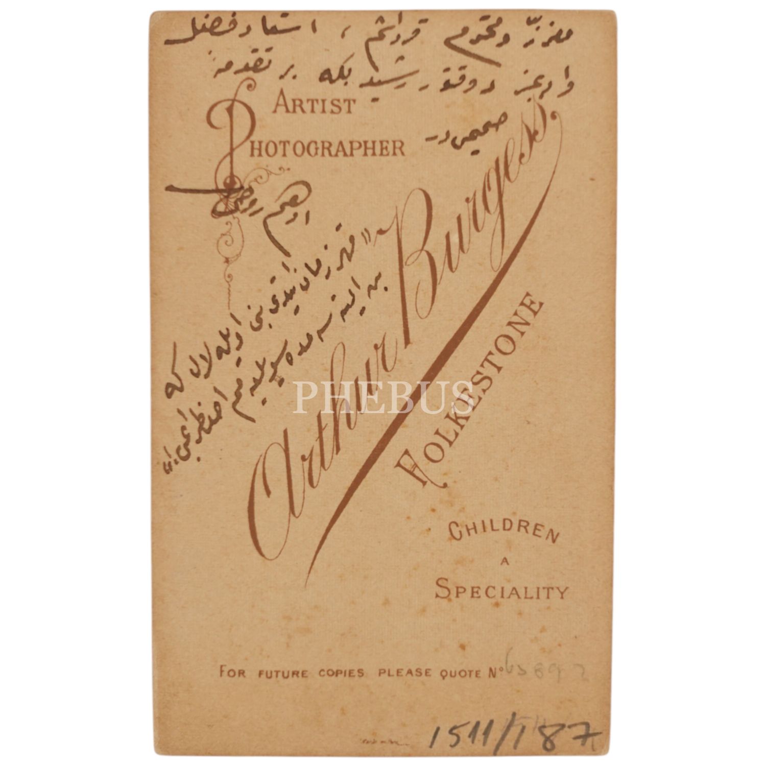Edhem Ruhi´nin ithaflı ve imzalı stüdyo fotoğrafı, Arthur Burgess (Folkestone - İngiltere), 7x10 cm...