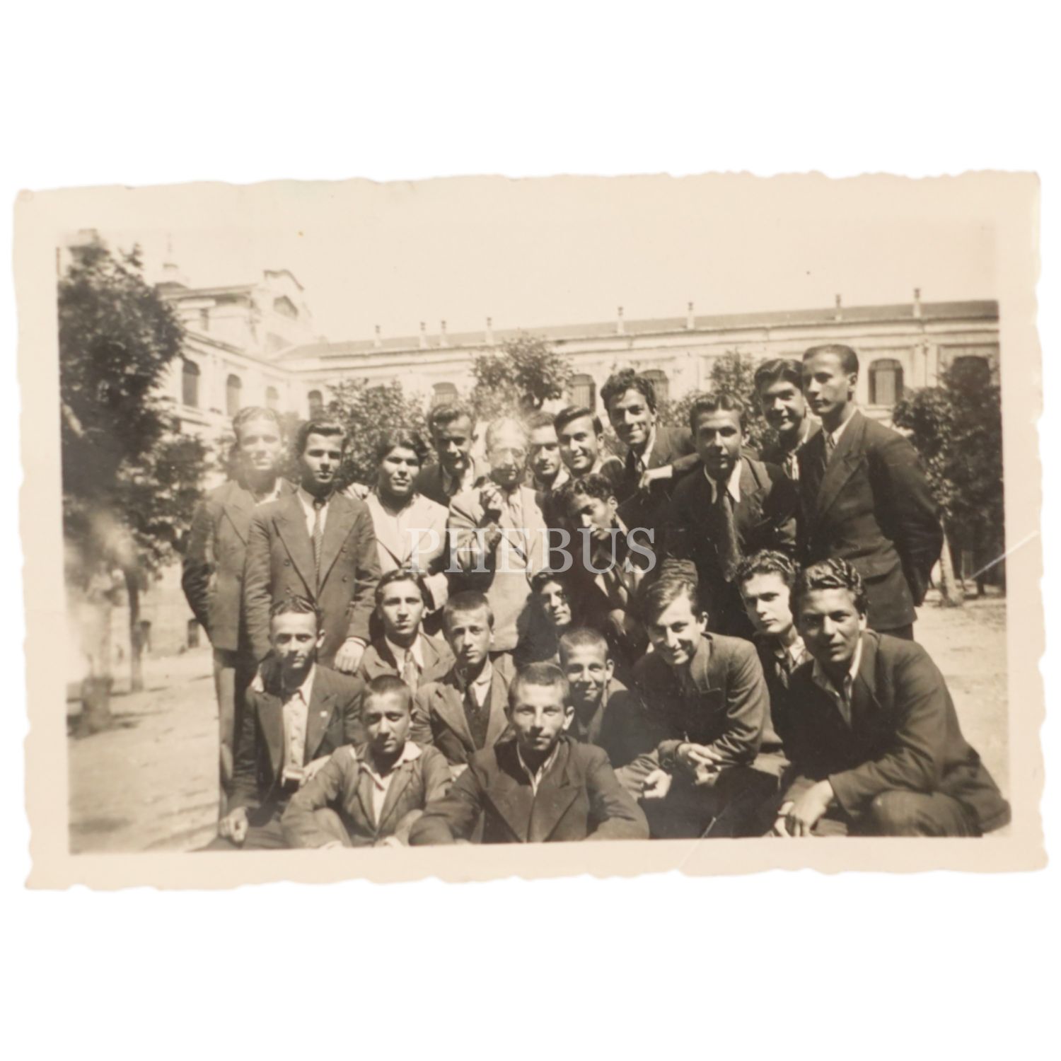 İstanbul Erkek Muallim Mektebi önünde öğrencileriyle poz veren Abdülbaki Gölpınarlı, 9x6 cm...