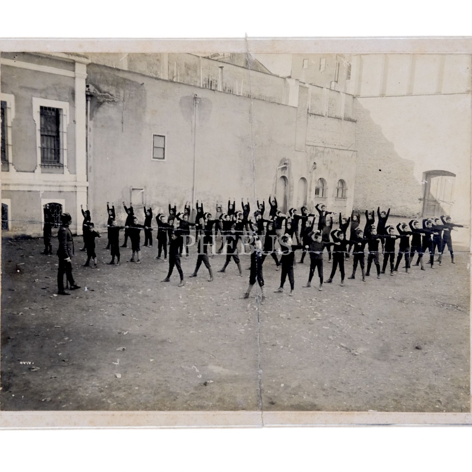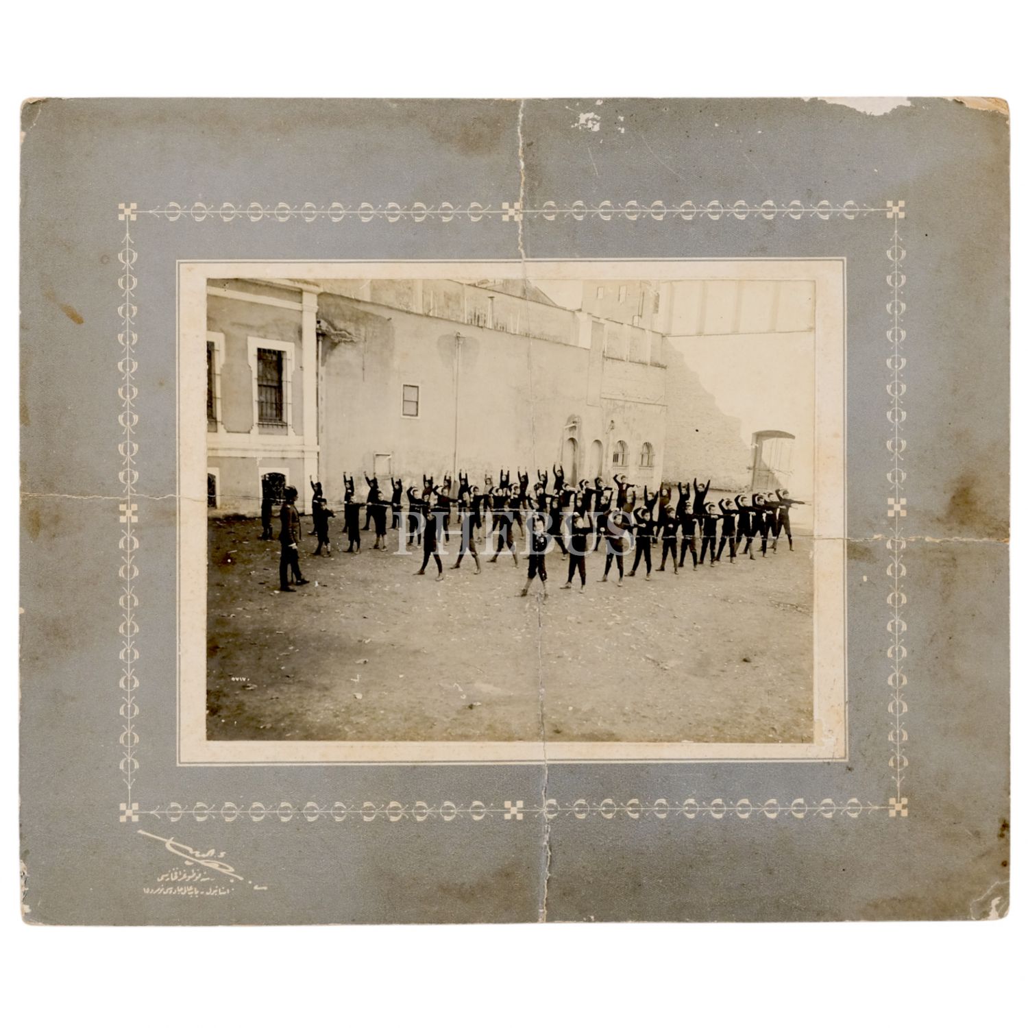 İttihat ve Terakki Mektebi öğrencileri beden eğitimi dersinde, Resne Fotoğrafhanesi - İstanbul, 36x30 cm...