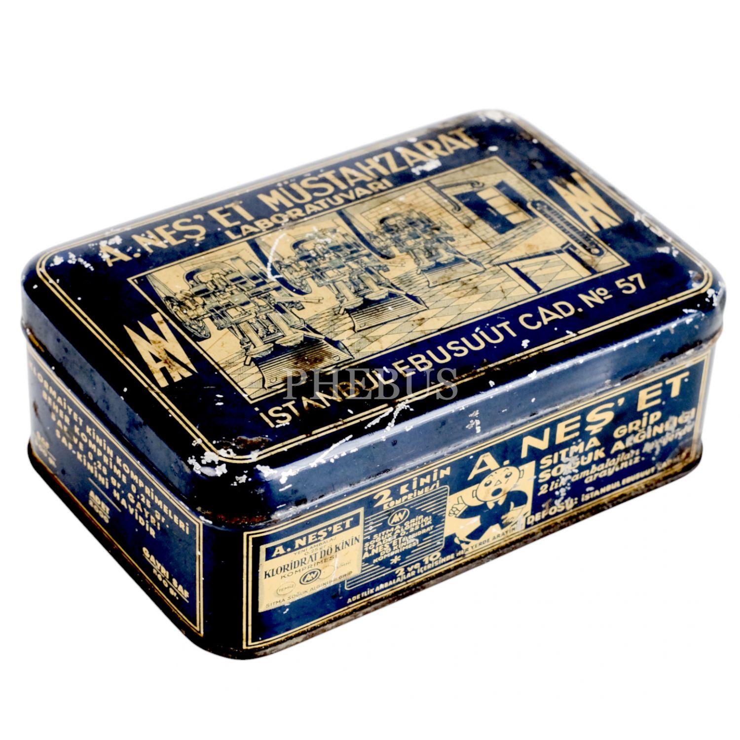 A. Neşet Müstahzarı Laboratuvarı reklamlı teneke kutu, 16x11x7 cm...
