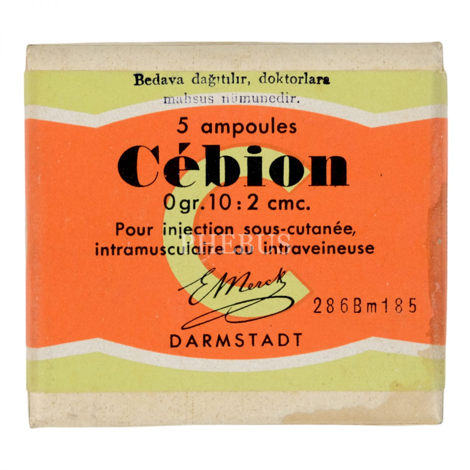 "Bedava dağıtılır, doktorlara mahsus numunedir" kaşeli, Cebion ilacının karton kutusu, 7x6x2 cm...