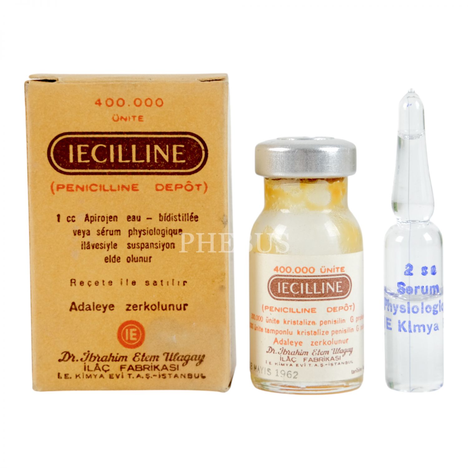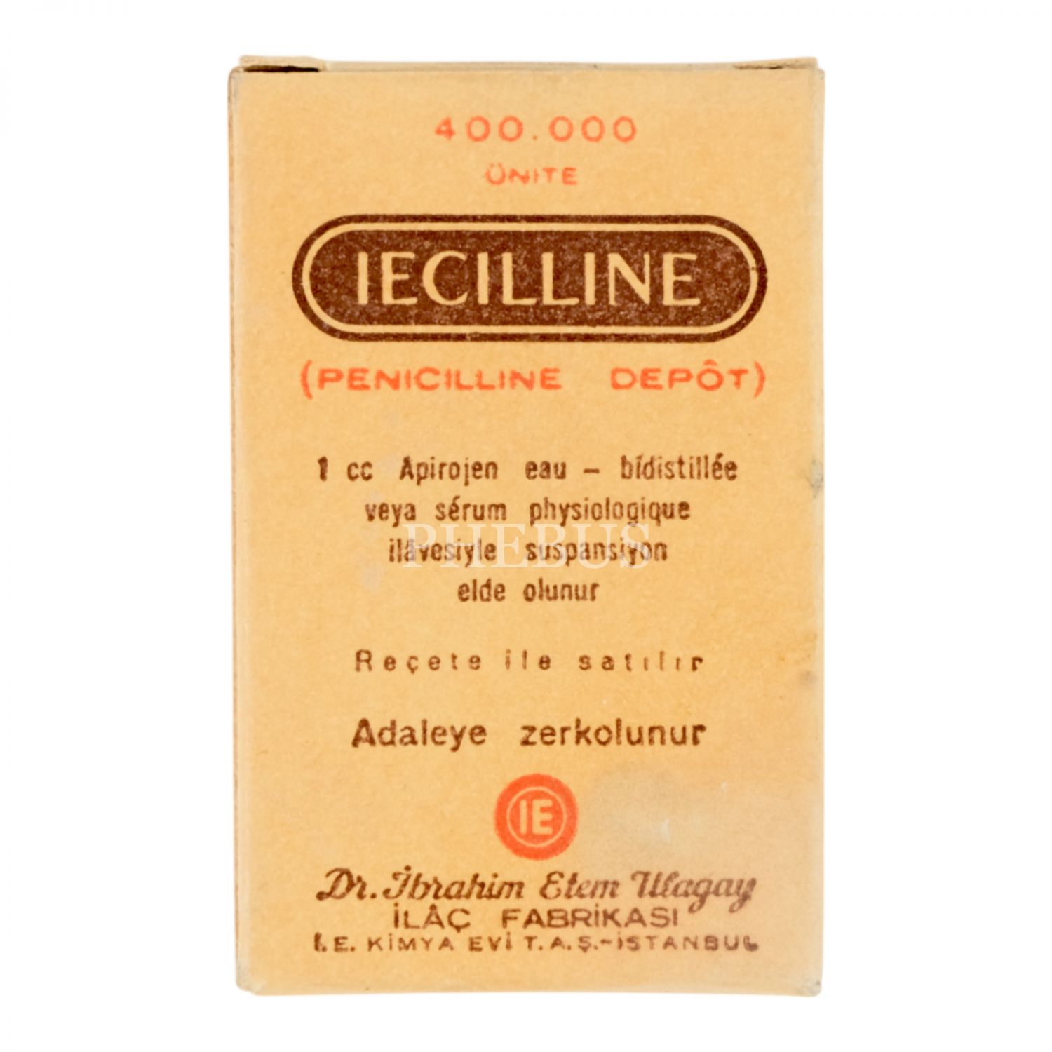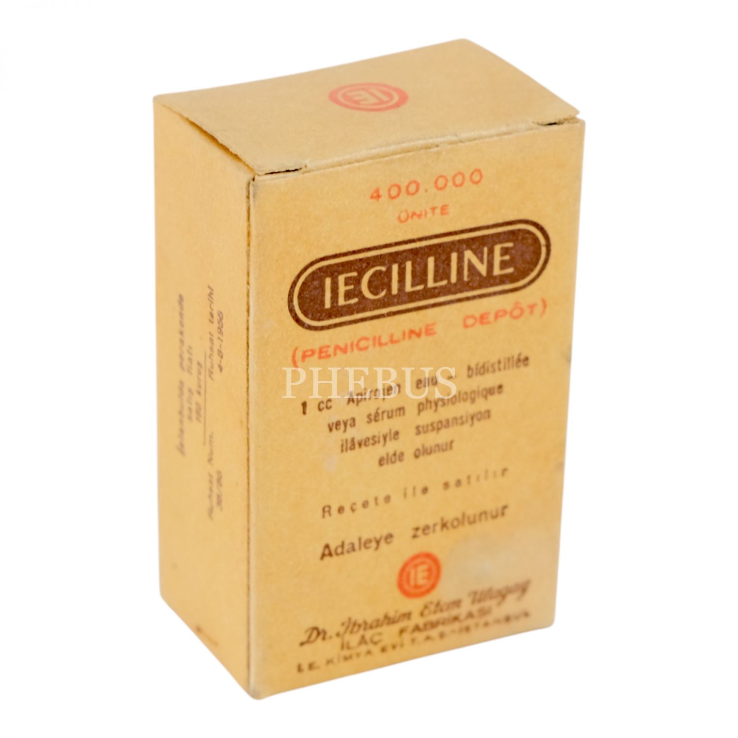 Doktor İbrahim Etem Ulagay İlaç Fabrikası´nda imal edilen Iecilline ilacı ve karton kutusu, 4x6x3 cm...