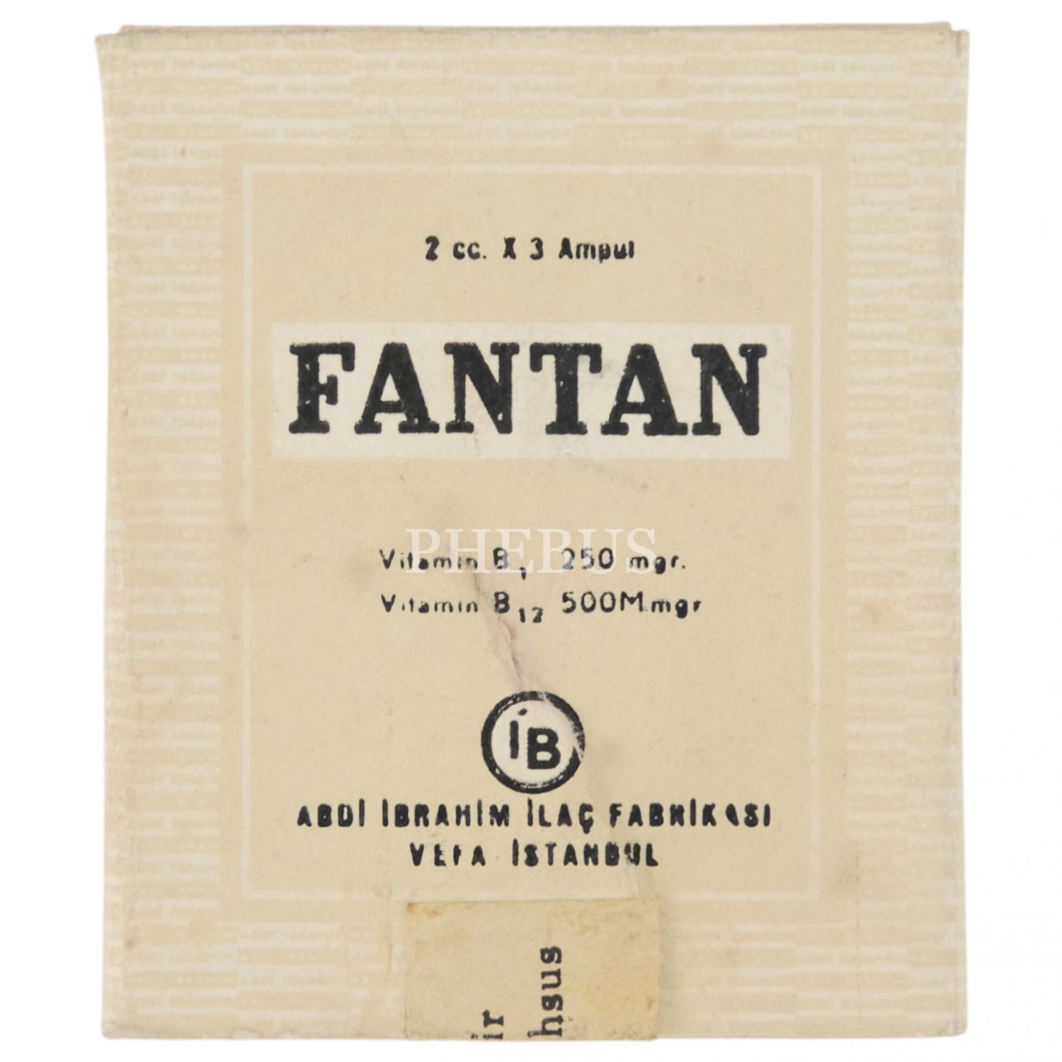 Abdi İbrahim İlaç Fabrikası´nın ürettiği Fantan ilacının karton kutusu, 6x6x2 cm...