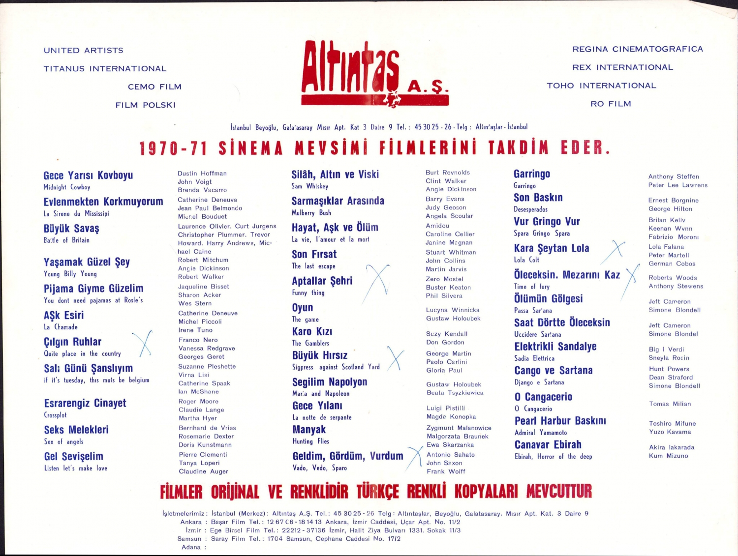 Altıntaş 1970 -1971 film listesi afişi, 32x39 cm