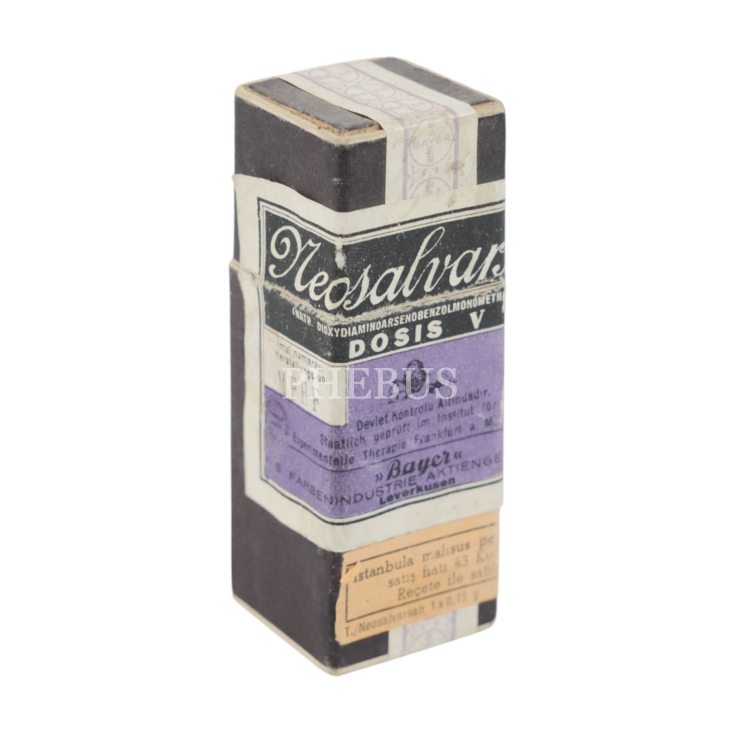 Türkiye Kızılay Cemiyeti Monopolu etiketli, Neosahvarsan ilacının karton kutusu, 8x3x3 cm...