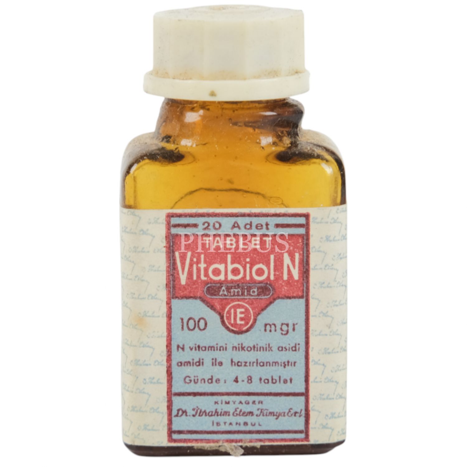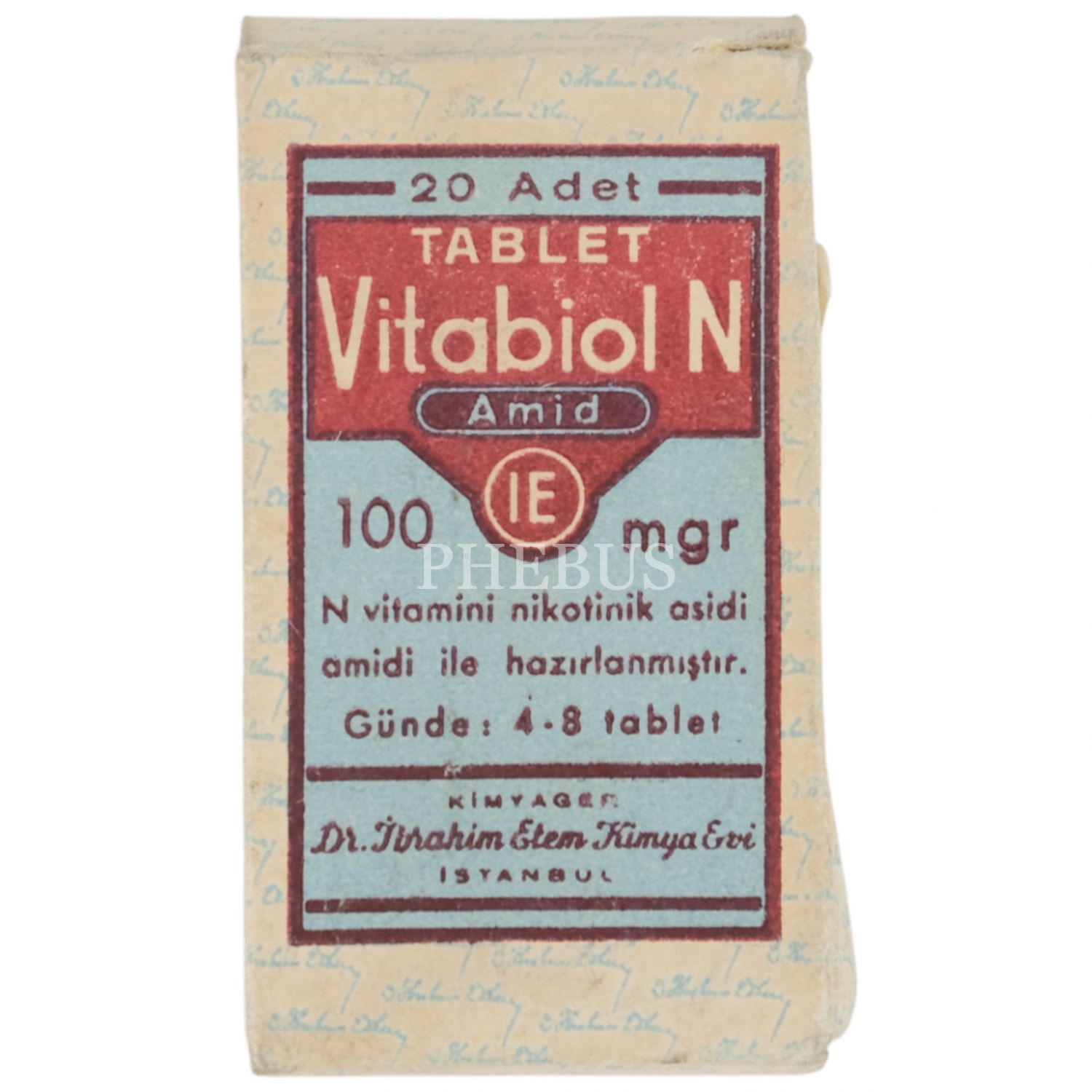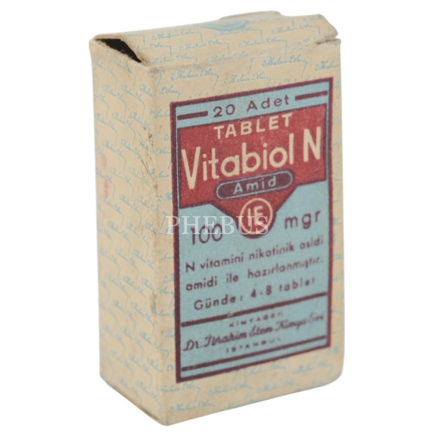 Doktor İbrahim Etem Kimyaevi imalatı Vitabiol N ilacı ve karton kutusu, 4x6x2 cm...