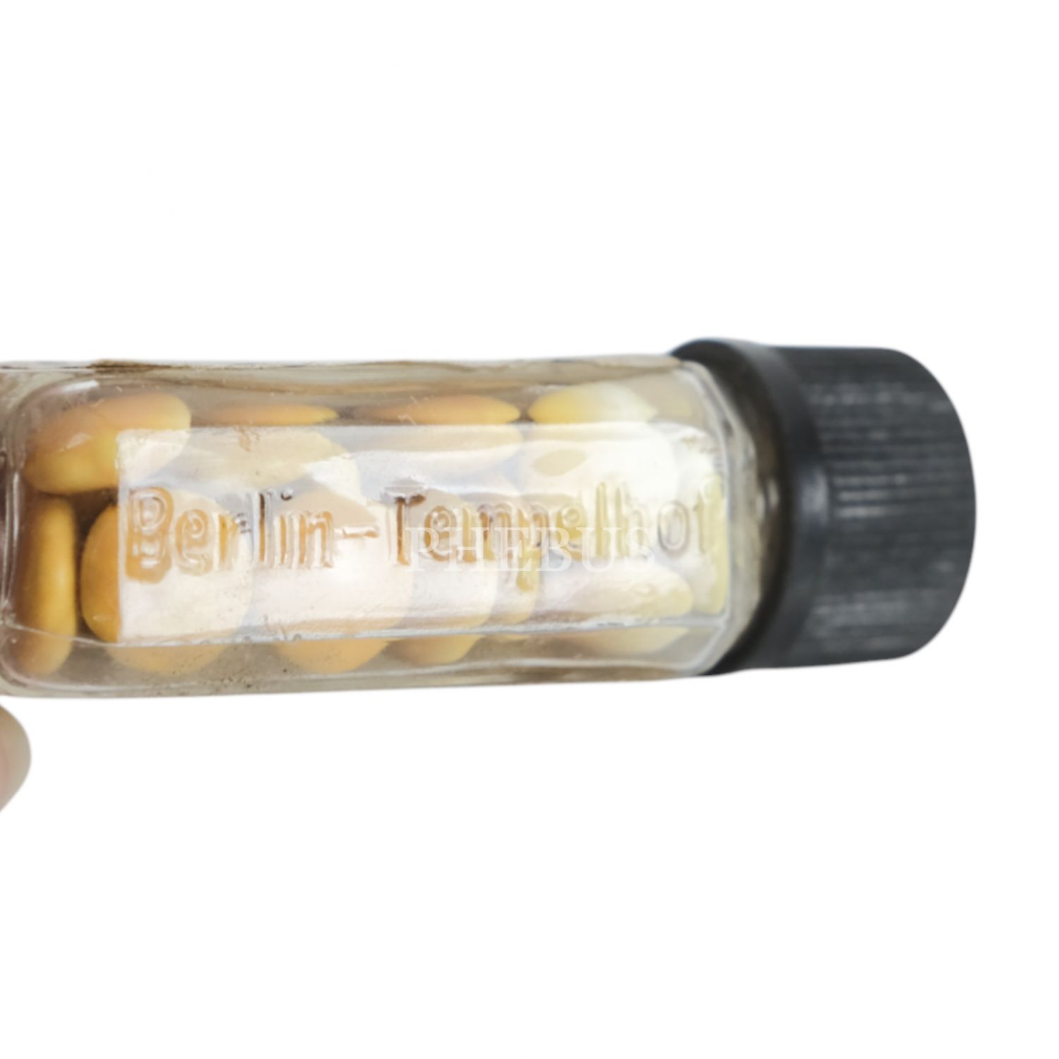 Luteogan ilacının cam şişesi, 6x2x2 cm..