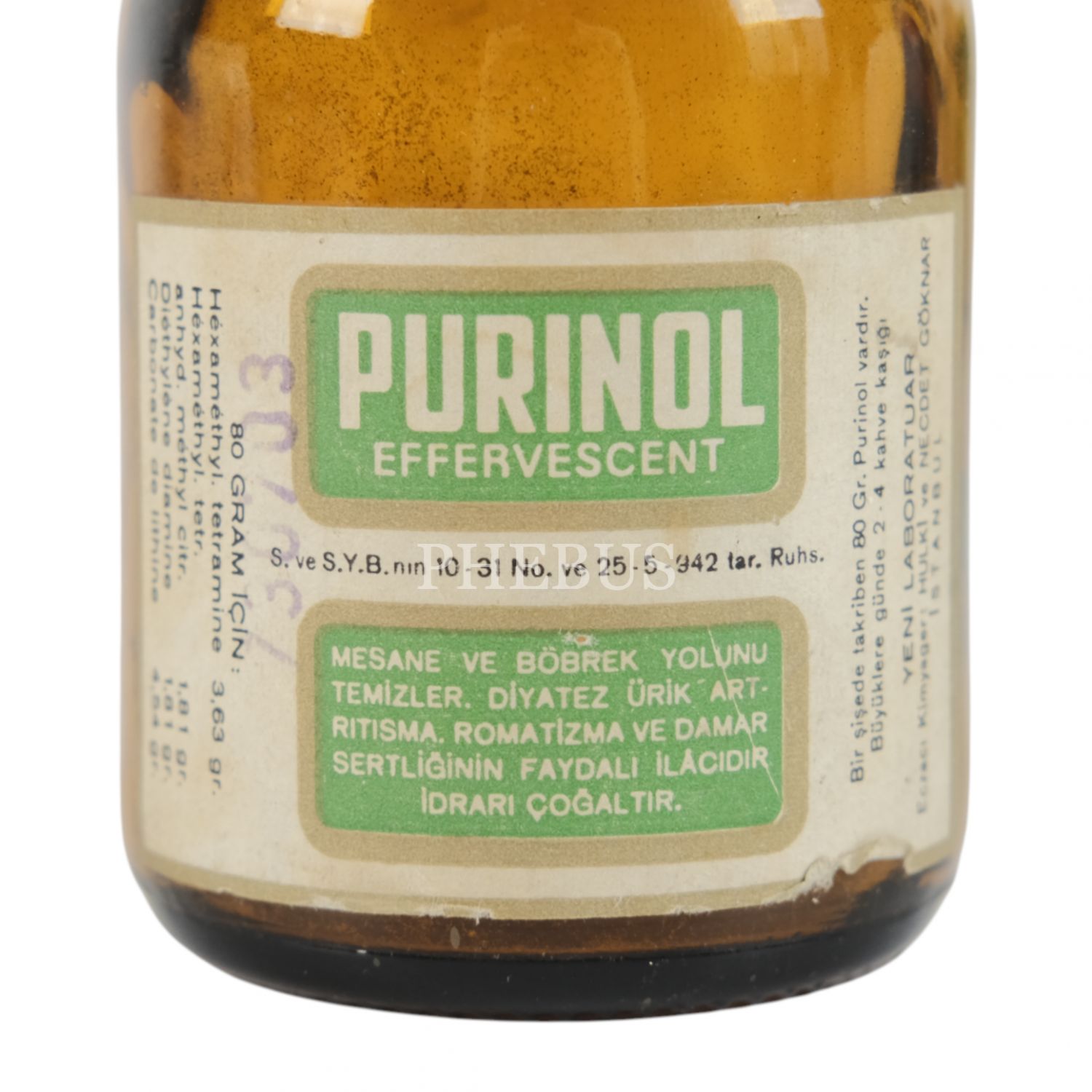 Purinol marka ilacın cam şişesi, 10x6 cm...