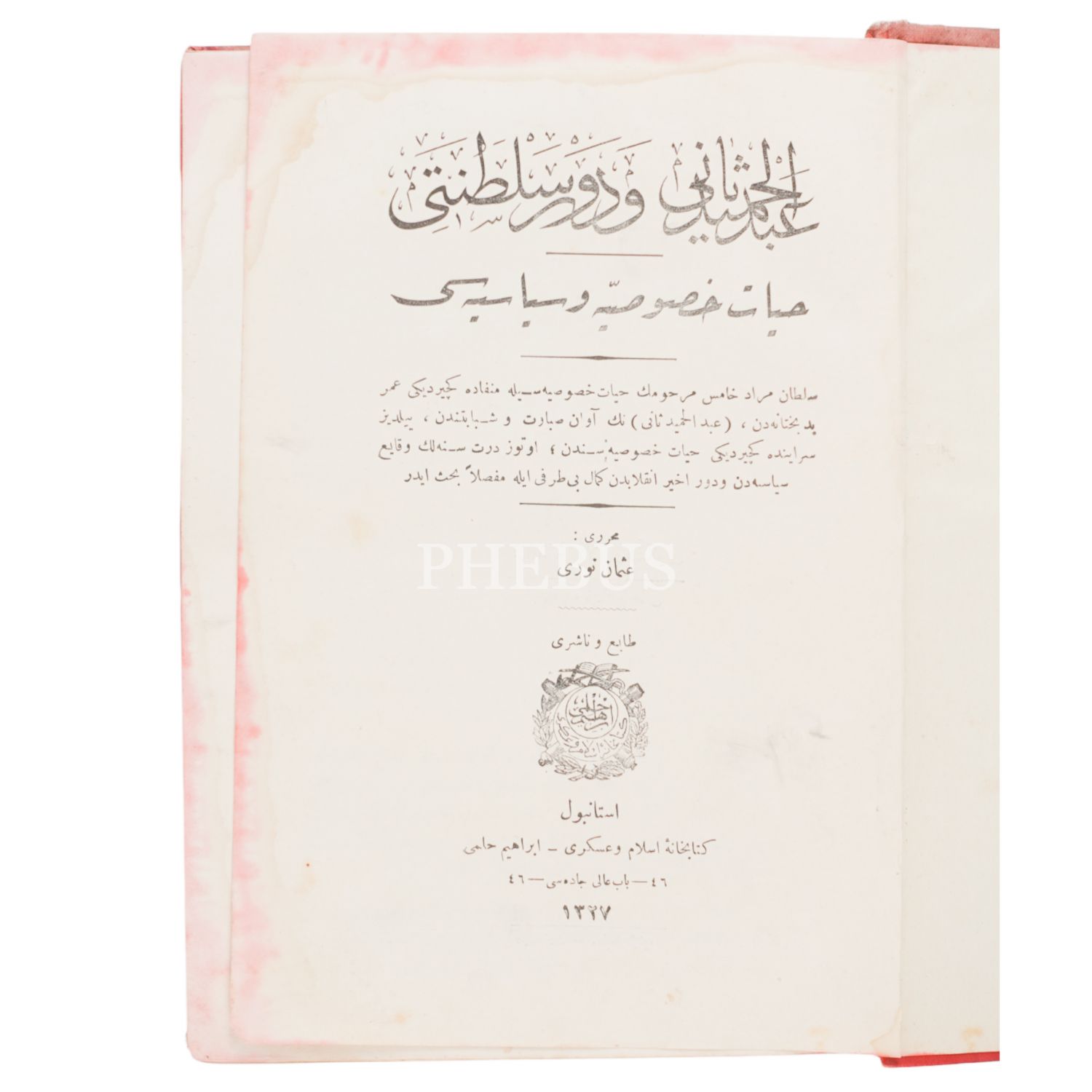 ABDÜLHAMİD-İ SANİ VE DEVR-İ SALTANATI (Hayat-ı Hususiyyesi ve Siyasiyyesi), Osman Nuri, 1327, Kütüphane-i İslam ve Askeri, 400 sayfa, 16x24 cm...