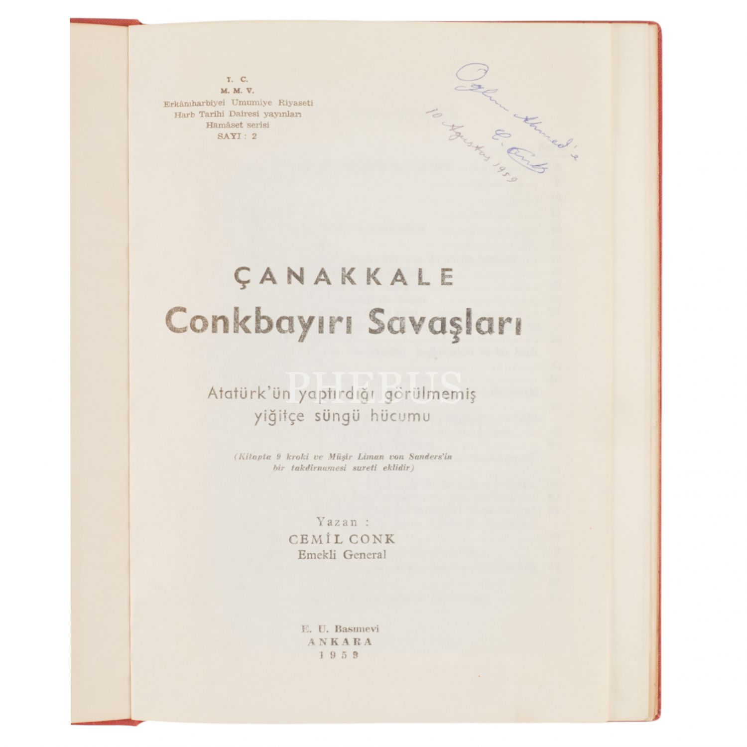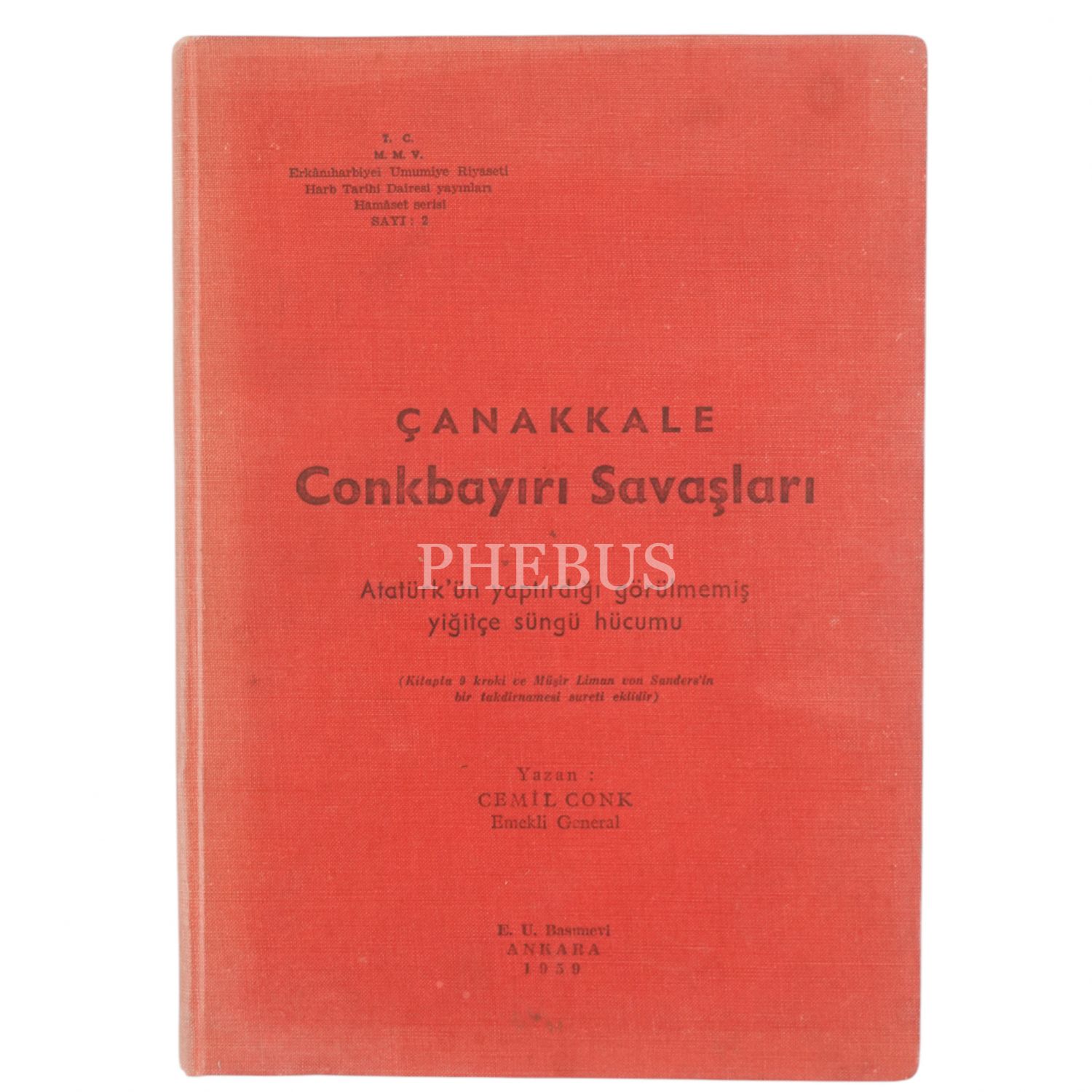ÇANAKKALE CONK BAYIRI SAVAŞLARI, Cemil Conk, 1959, Erkanı Harbiye-i Umumiye Riyaseti, 94 sayfa, 18x24 cm...