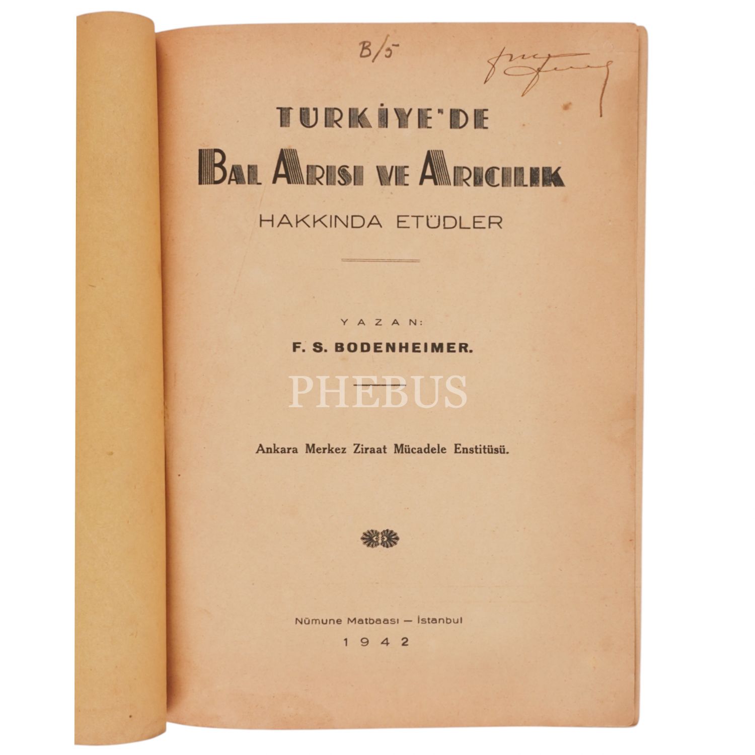 TÜRKİYE´DE BAL ARISI VE ARICILIK HAKKINDA ETÜDLER, F.S. Bodenheimer, 1942, Ankara Merkez Ziraat Mücadele Enstitüsü, 119 sayfa, 18x25 cm...