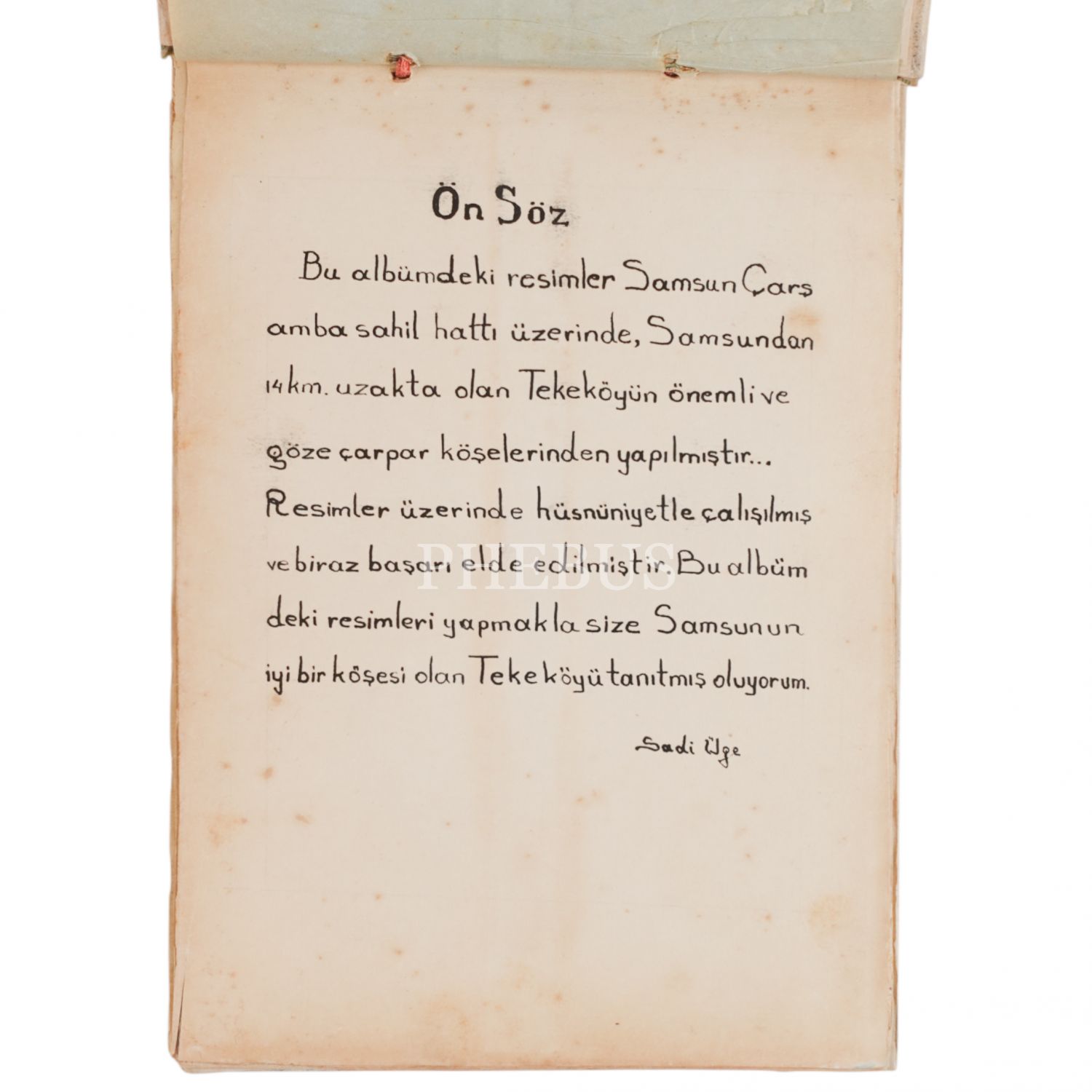 Bu çalışma 1945-46 eğitim dönemi Samsun Lisesi´nde resim öğretmenliği yapan ressam Hasan Kavruk hocanın terekesinden çıkmıştır. Hasan Kavruk, İbrahim Çallı ve Mahmut Cüda ile Türk Ressamlar Cemiyeti´ni kurmuş, 1966´da Yılın Ressamı seçilmiş önemli ressamlarımızdandır. Sami Üge´nin bu albümü hazırlama amacı Tekeköy´ün güzelliklerini tanıtmak istemesidir. 15 adet guaj boya resim çalışması bulunmaktadır.