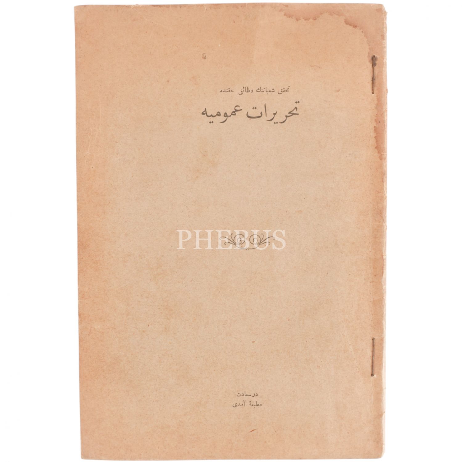 TAHAKKUK ŞUABATININ VEZAİFİ HAKKINDA TAHRİRAT-I UMUMİYE, 1331, Matbaa-i Amedi, 48 sayfa, 17x24 cm...