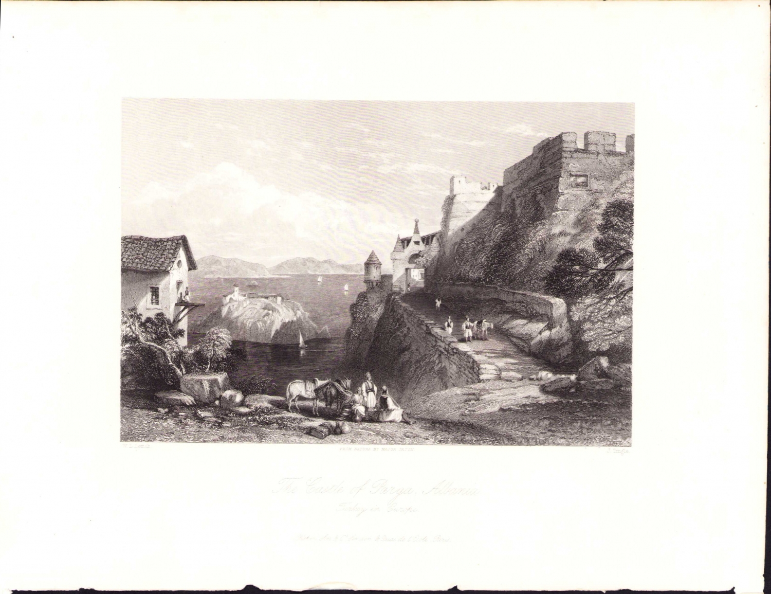 Osmanlı dönemi gravür, Arnavutluk, Parga Kalesi, 28x21 cm