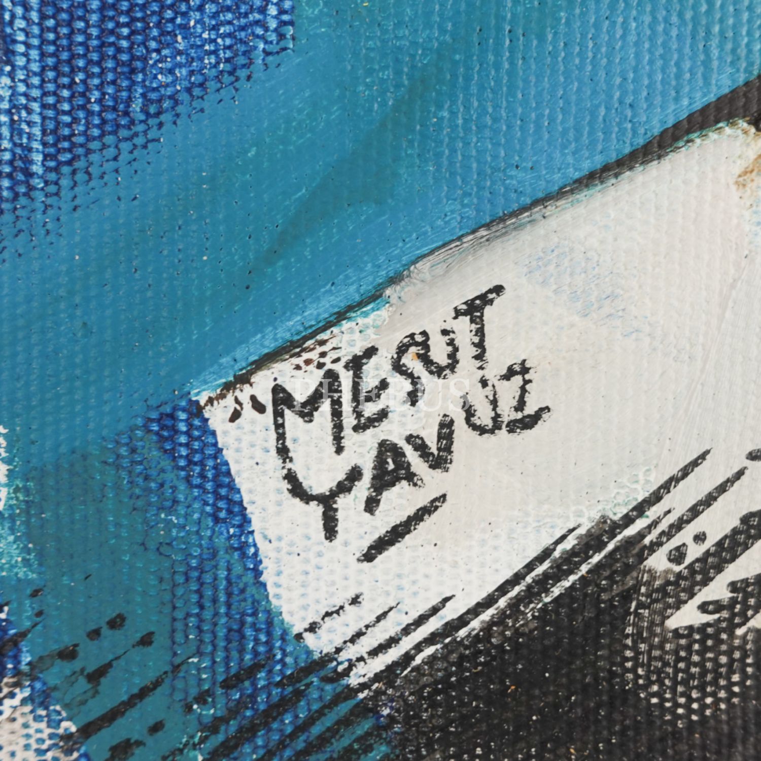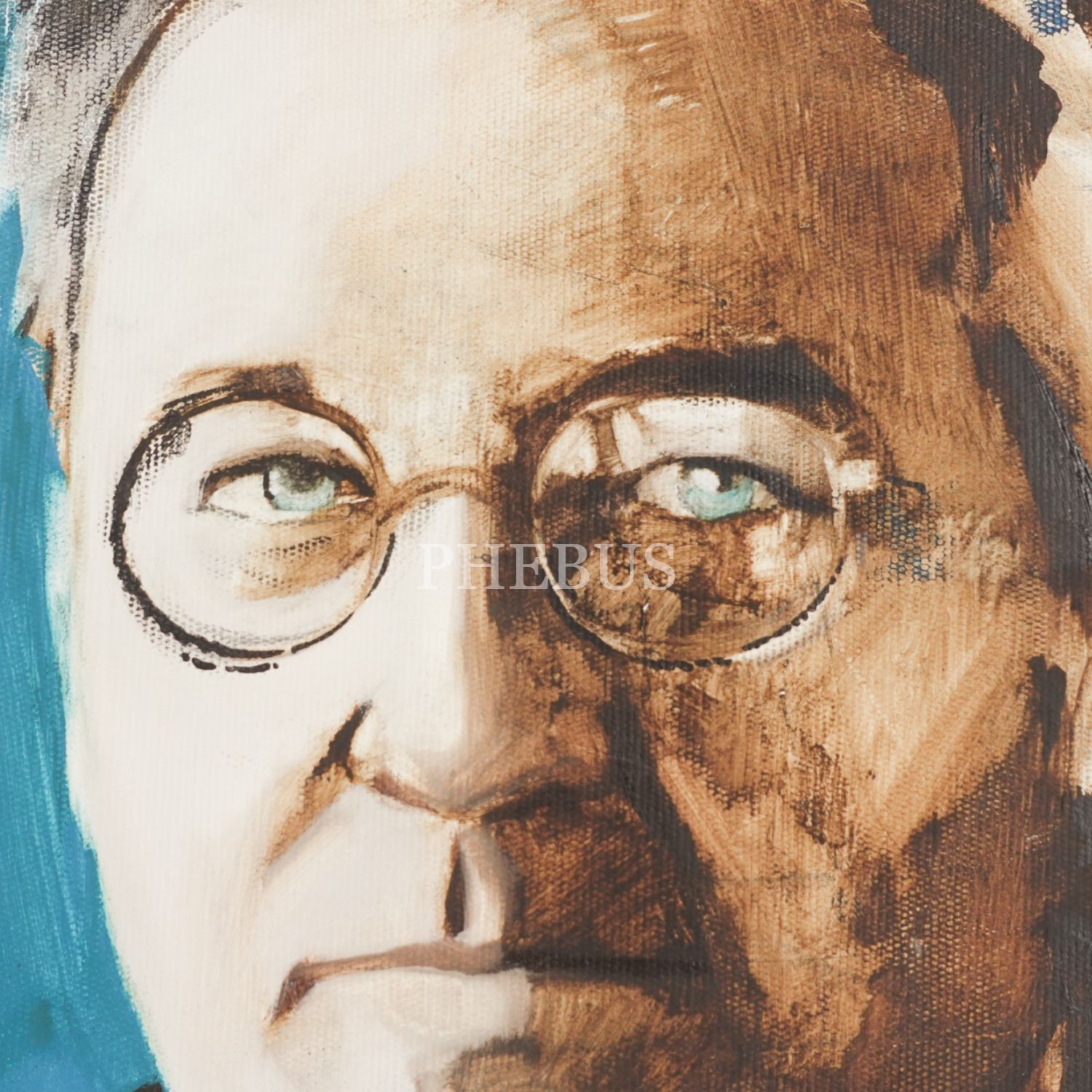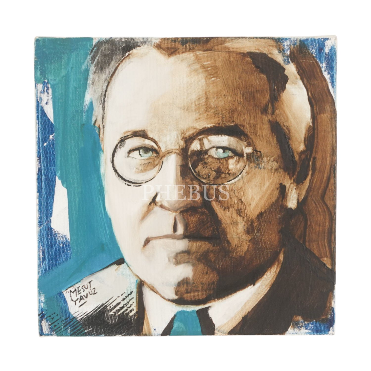 Mesut Yavuz imzalı, Sabahattin Ali portre çizimi, tuval üzerine guaj boya, 25x26 cm...