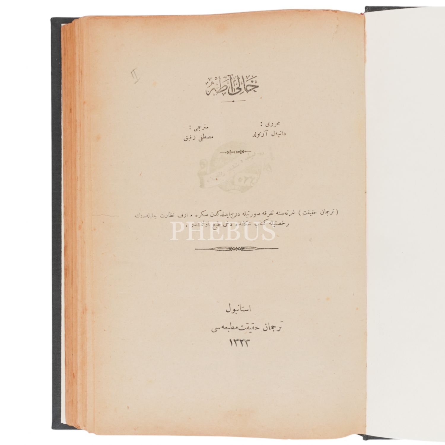 HALİ ADA, Daniel Arnold, (çeviren: Mustafa Refik), 1323, Tercüman-ı Hakikat Matbaası, 319 sayfa, 17x24 cm...
