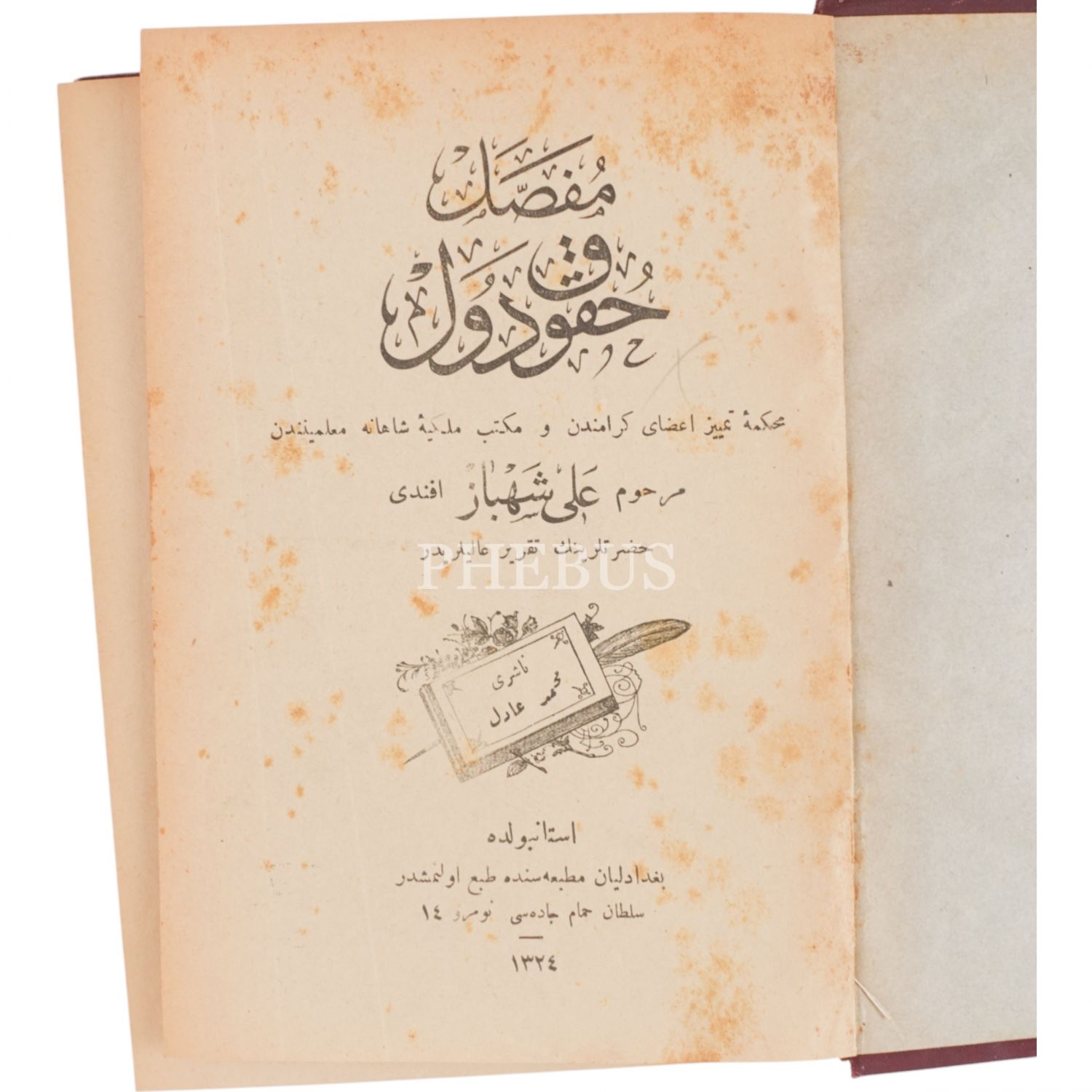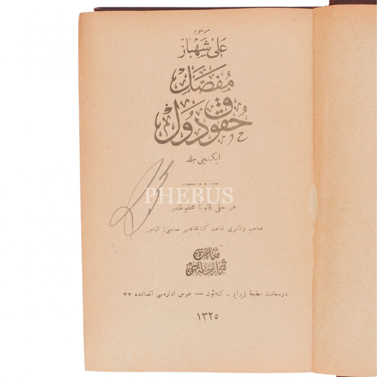 MUFASSAL HUKUK-U DÜVEL, Ali Şahbaz (1-2. Ciltler), 1325, Dersaadet Matbaası,1174 sayfa, 14x20cm...