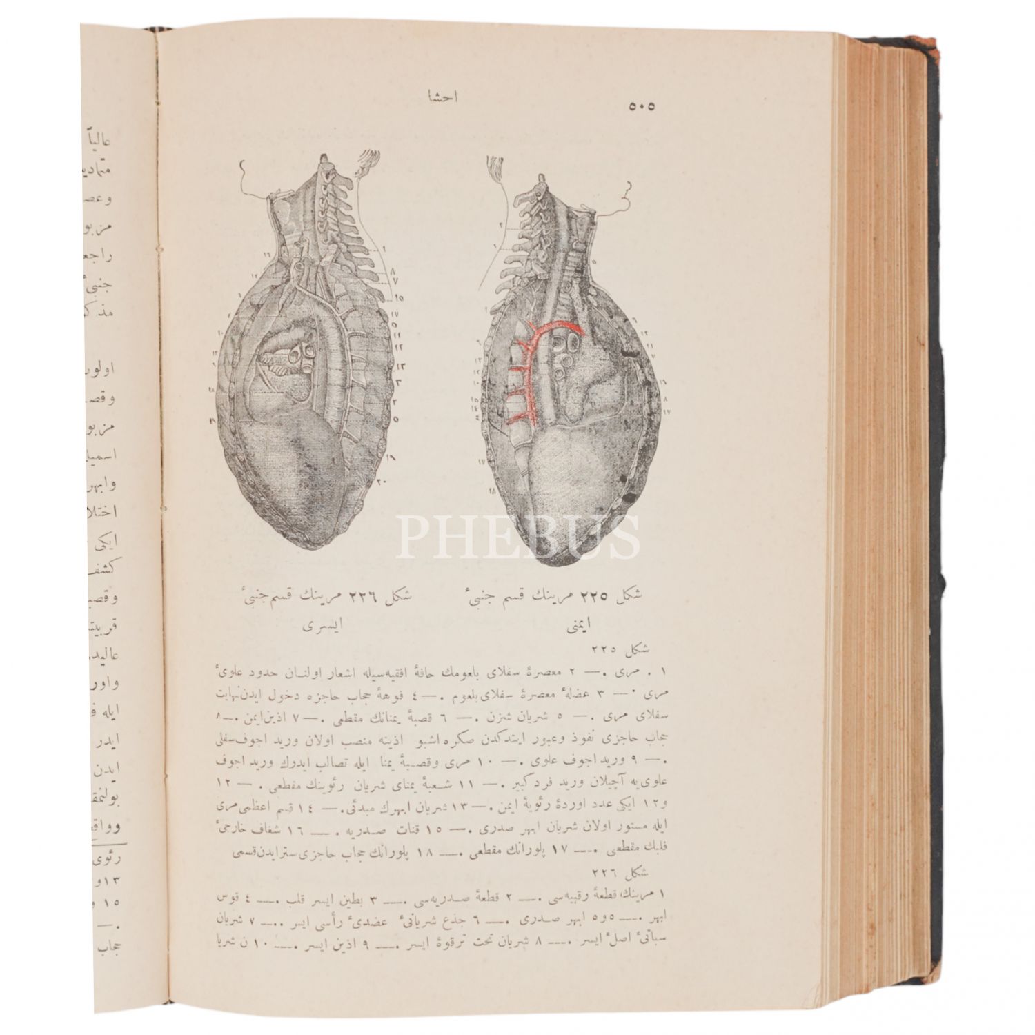 İLM-İ TEŞRİH-İ TAVSÎFÎ (A´sab ve Ahşa kitapları), Tabib Miralay Hasan Mazhar Paşa, 1329, Mekteb-i Tıbbiye-i Askeriye Matbaası, 286+841 sayfa, 25x16 cm...