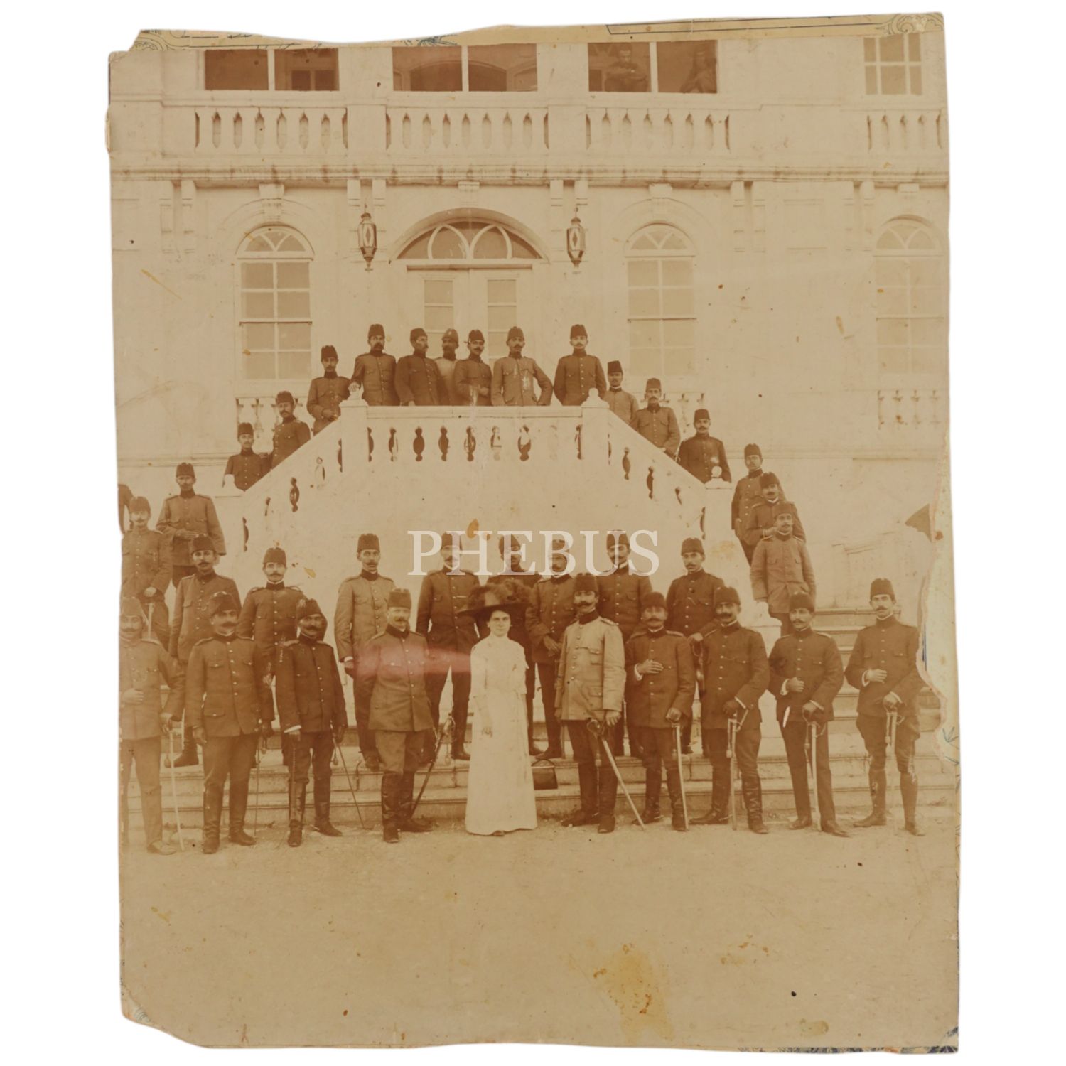 Osmanlı paşaları ve subayları ile birlikte bir hanımefendinin fotoğrafı, 27x32 cm...