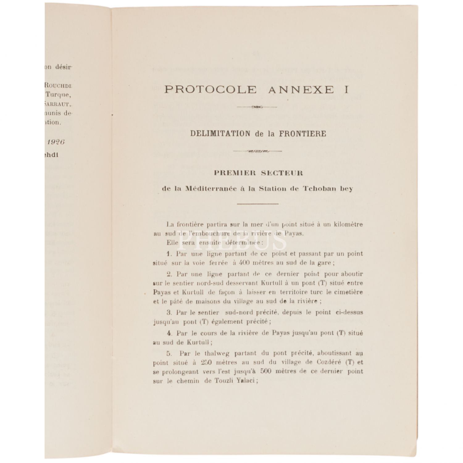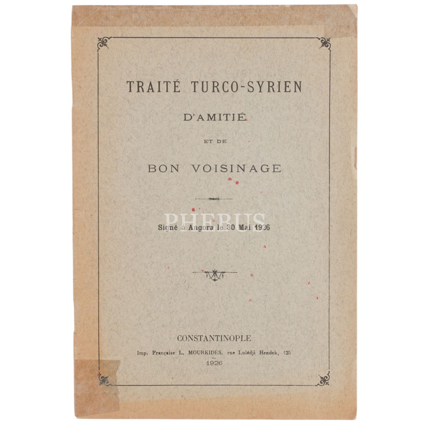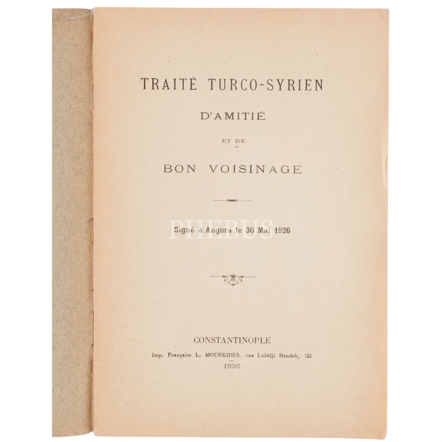 TRAITE TURCO-SYRIEN D´AMITIE ET DE BON VOISINAGE, 1926, Imprimiere Française L. Mourkides, 33 sayfa, 17x24 cm...