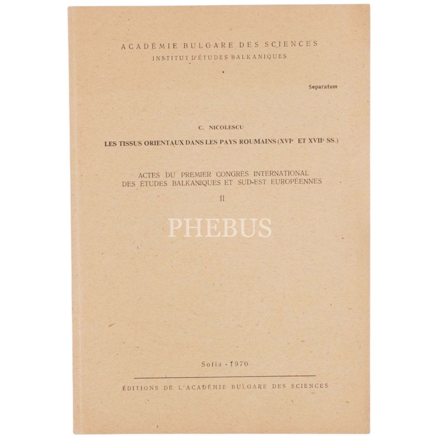 LES TISSUS ORIENTAUX DANS LES PAYS ROUMAINS , C. Nicolescu, 1970, Academie Bulgare Des Sciences (Sofya), 26 sayfa, 17x24 cm...