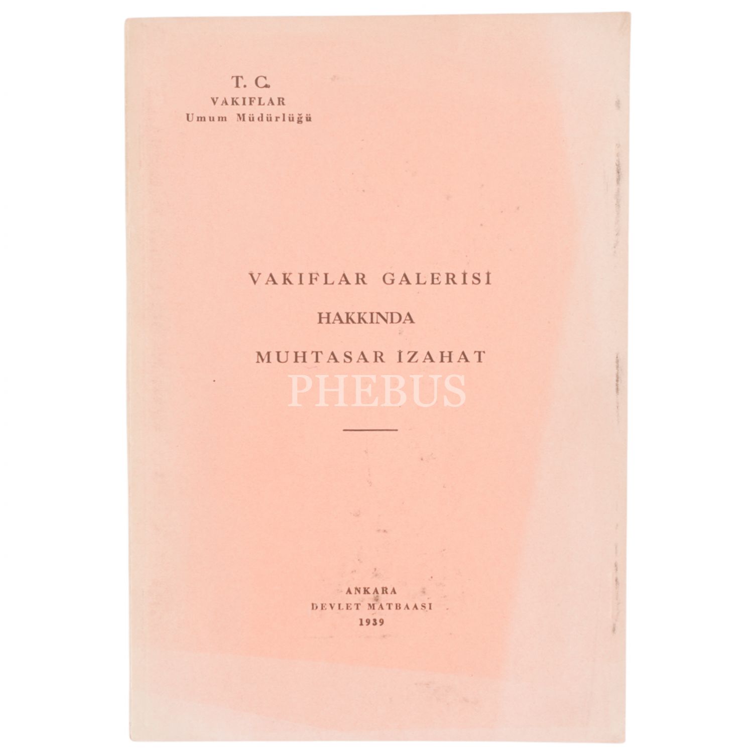 VAKIFLAR GALERİSİ HAKKINDA MUHTASAR İZAHAT, 1939, Vakıflar Umum Müdürlüğü, 27 sayfa, 17x24 cm...