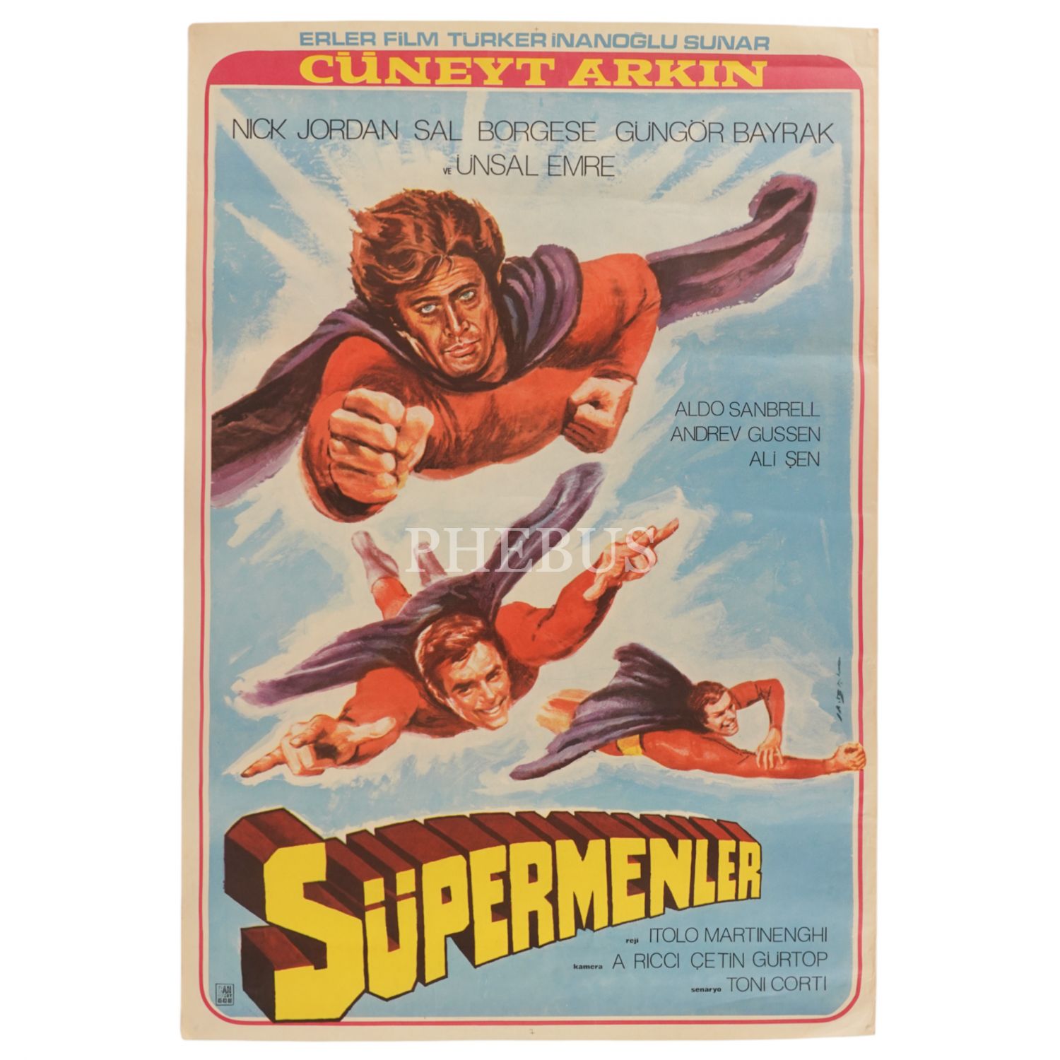 SÜPERMENLER, Cüneyt Arkın, Nick Jordan & Sal Borgese & Güngör Bayrak & Ünsal Emre, Erler Film, Can Ofset, 68x100 cm...