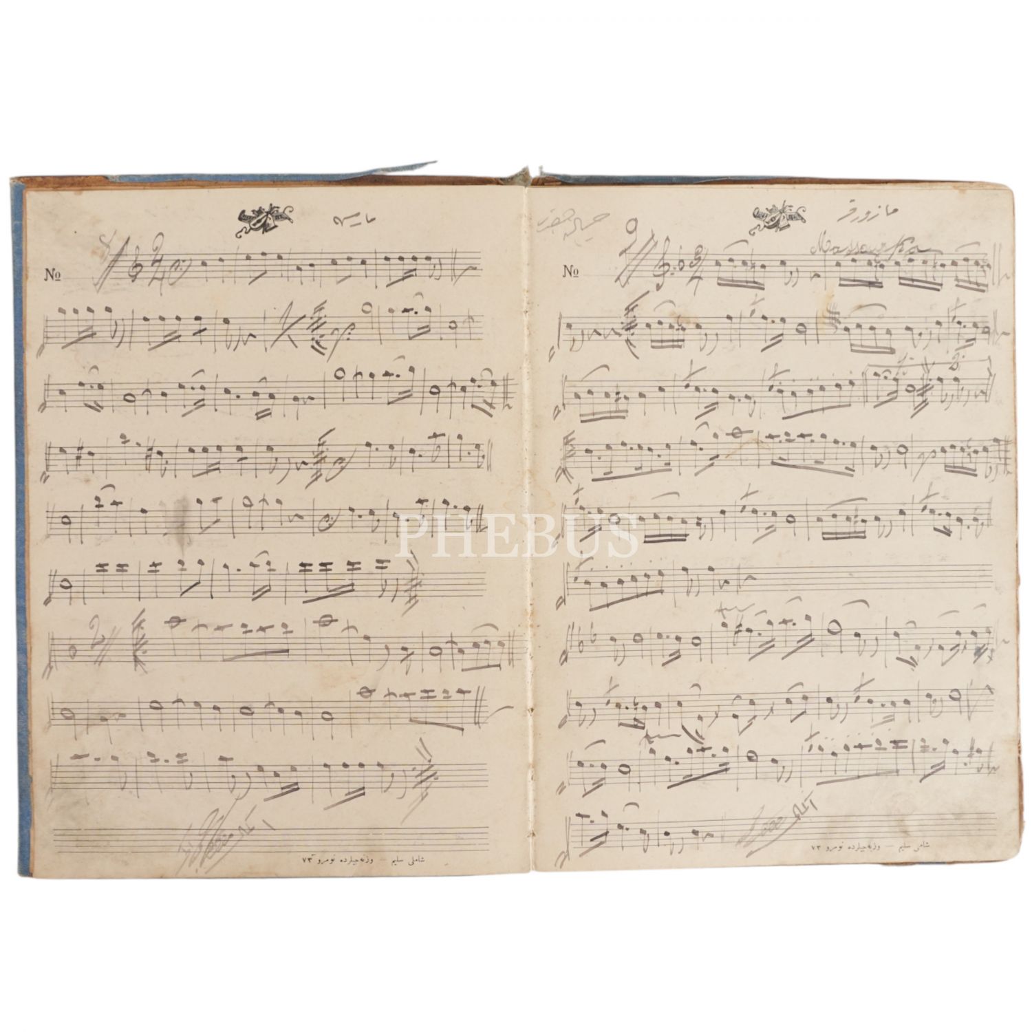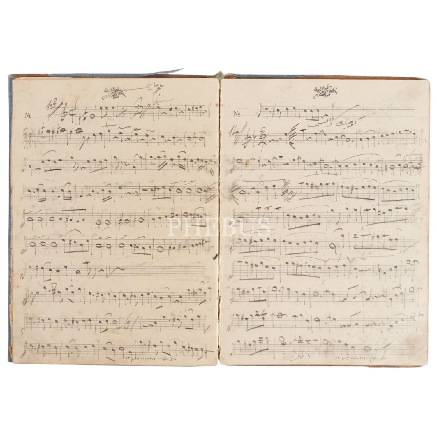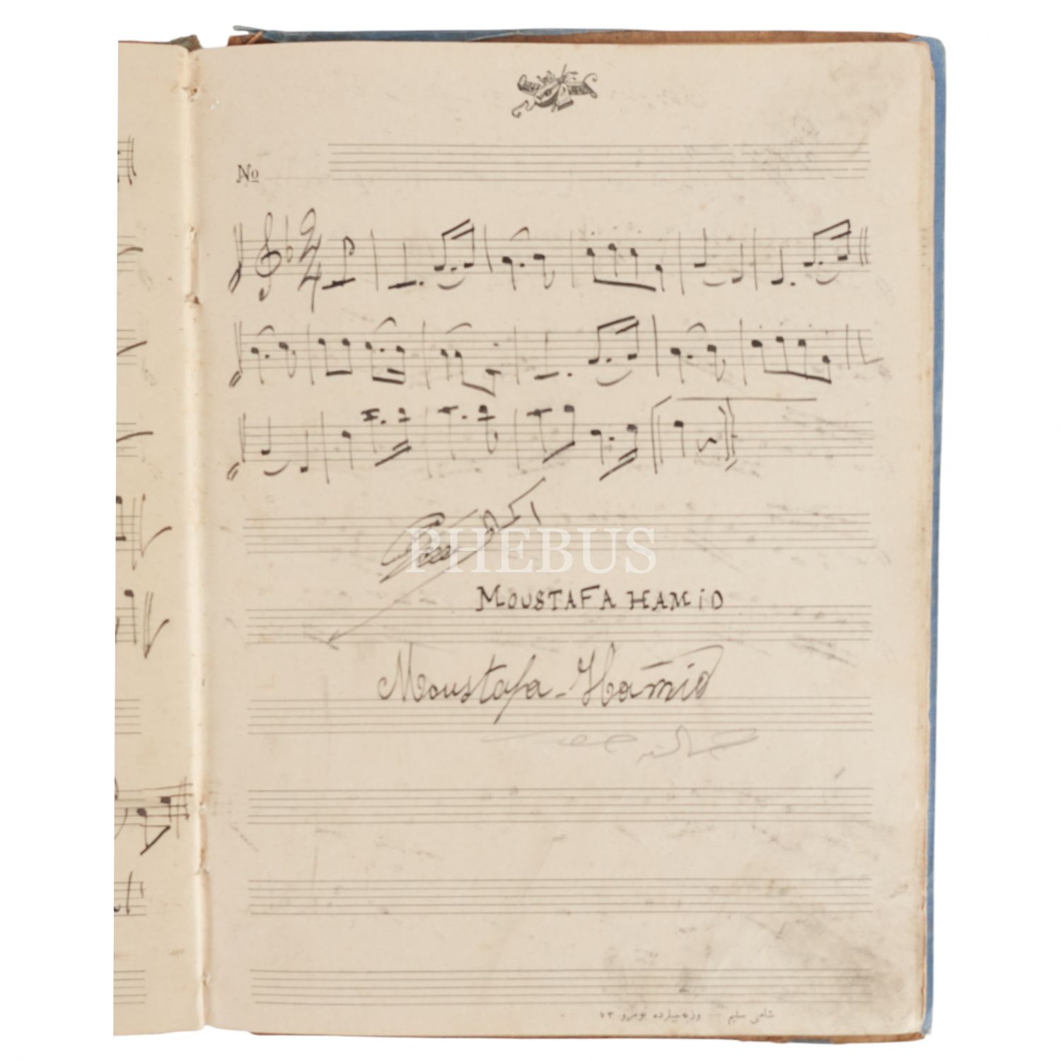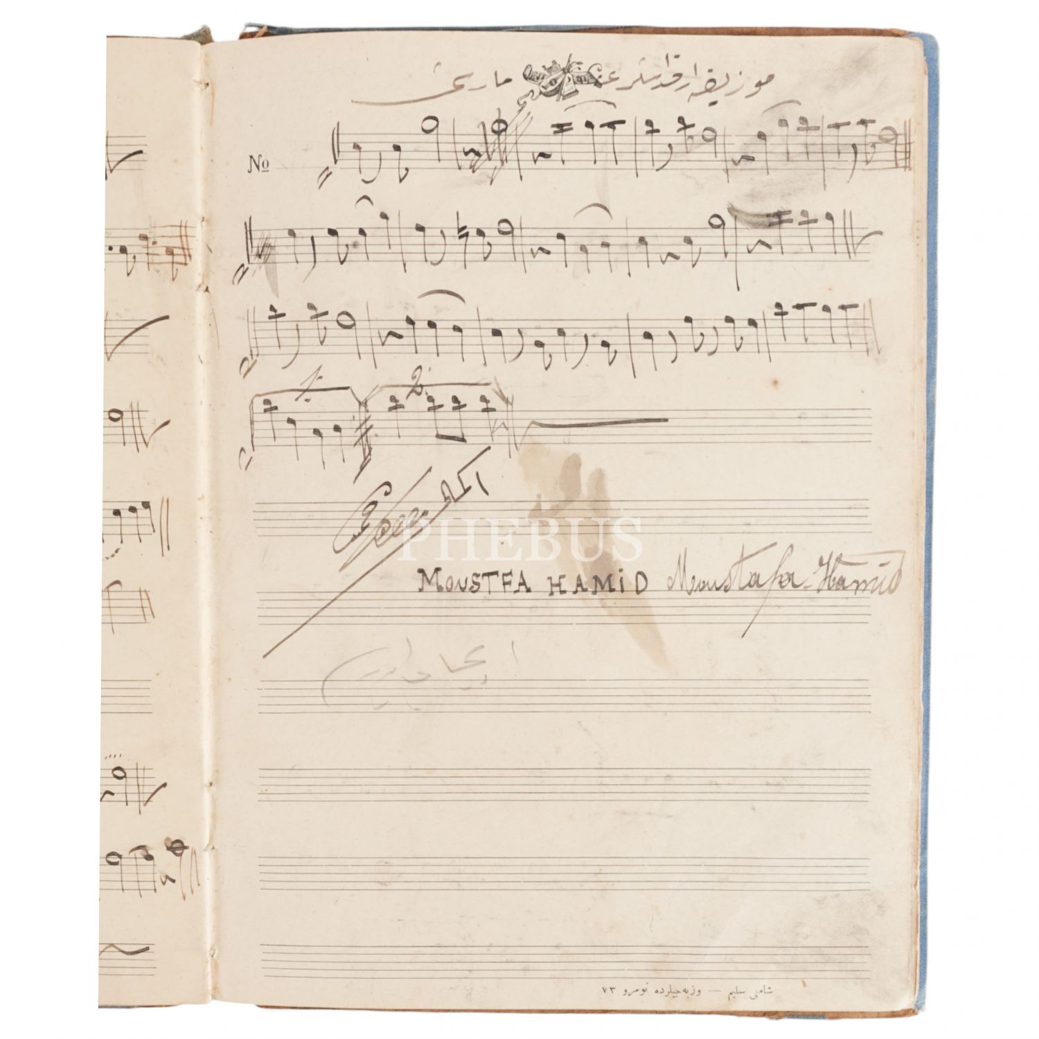Mustafa Hamid isimli bir bestekarın bestelerini kaydettiği nota defteri, 20x28 cm...
