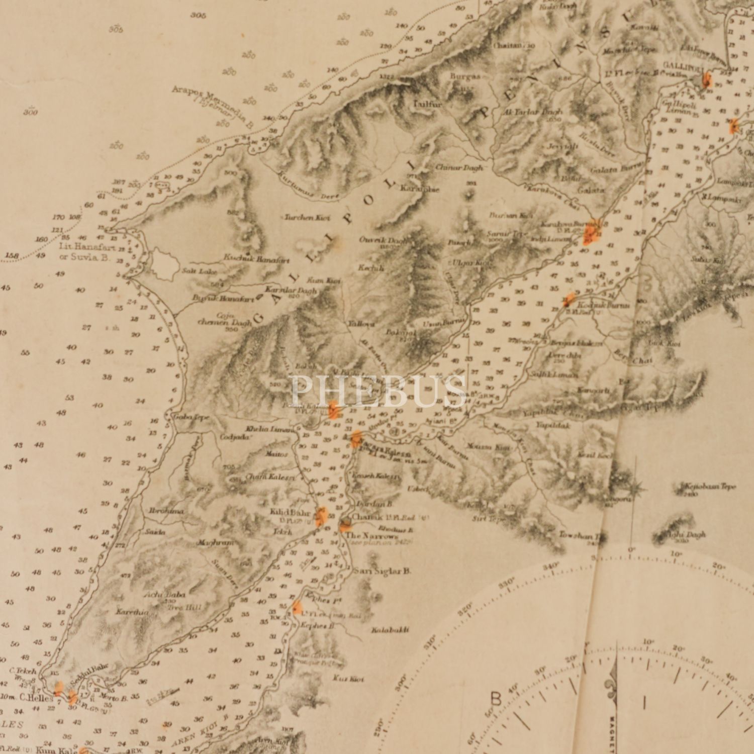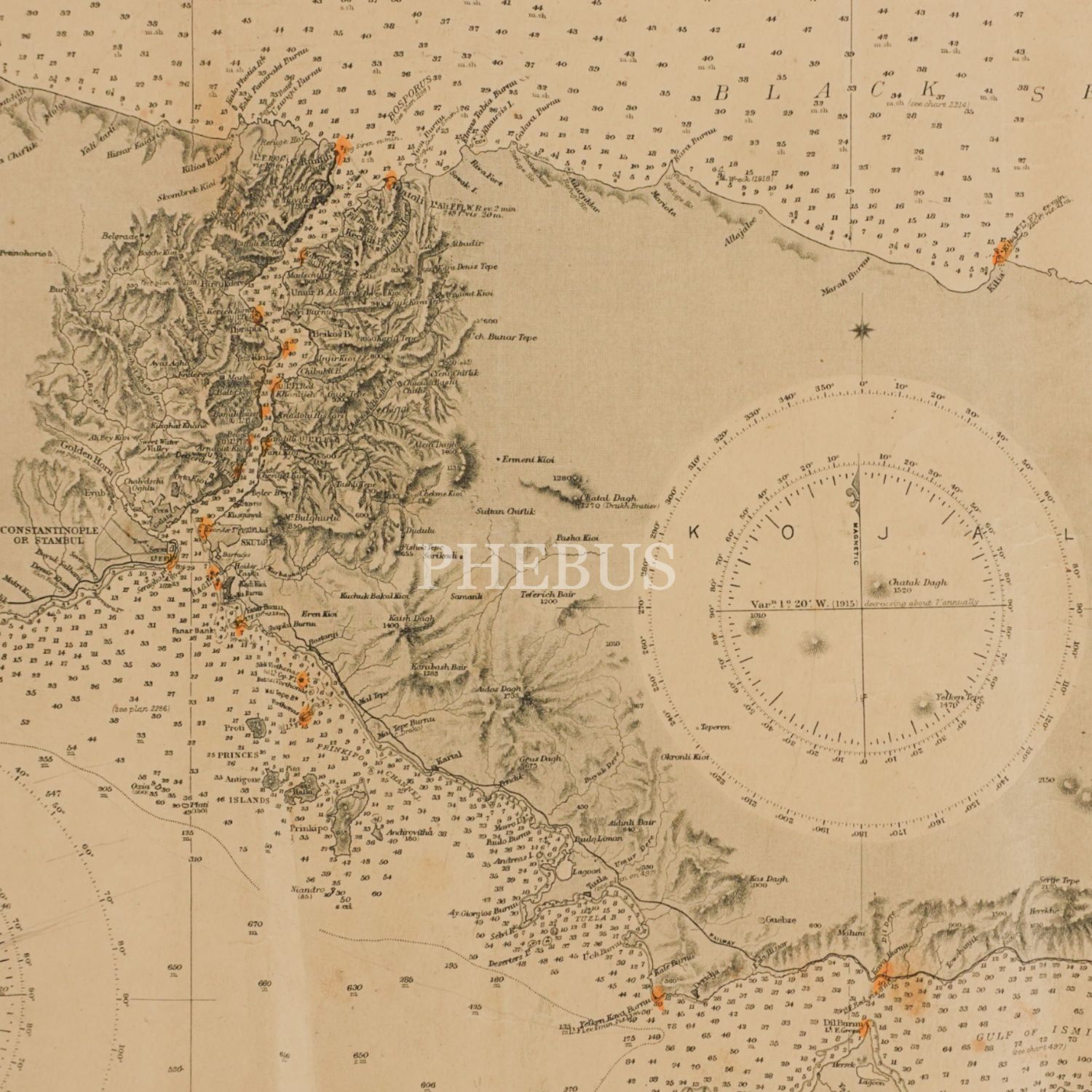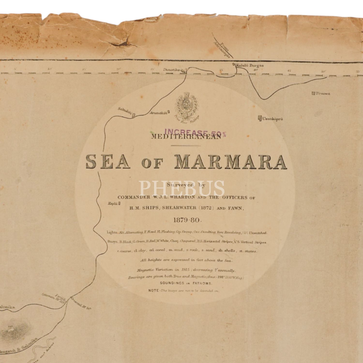 İngilizce Marmara Denizi haritası, "Sea of Marmara", W. J. L. Wharton, 1879-80, 130x72 cm...