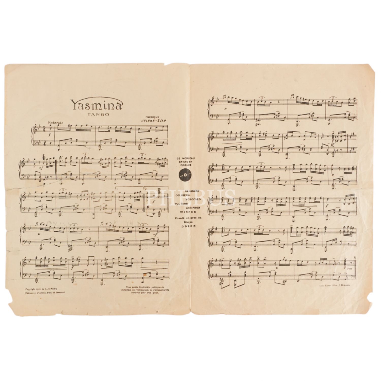 Helene Svap´ın bestelediği YASMINA notası, Alexandrie (İskenderiye), 25x35 cm...