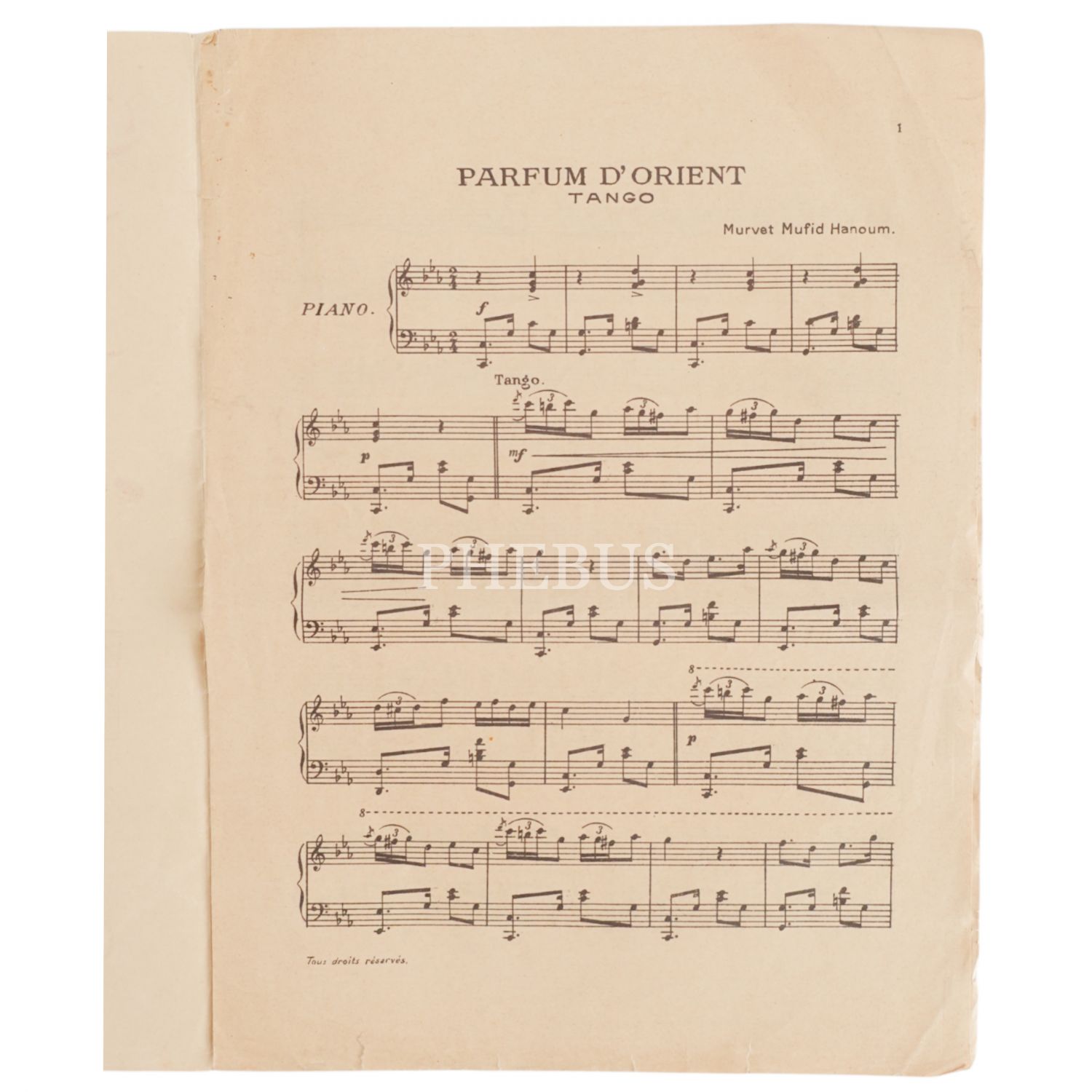Mürvet Müfit Hanım tarafından bestelenen Rayiha-i Şark (Parfum D´ Orient) nota defteri, 8 sayfa, 25x35 cm...
